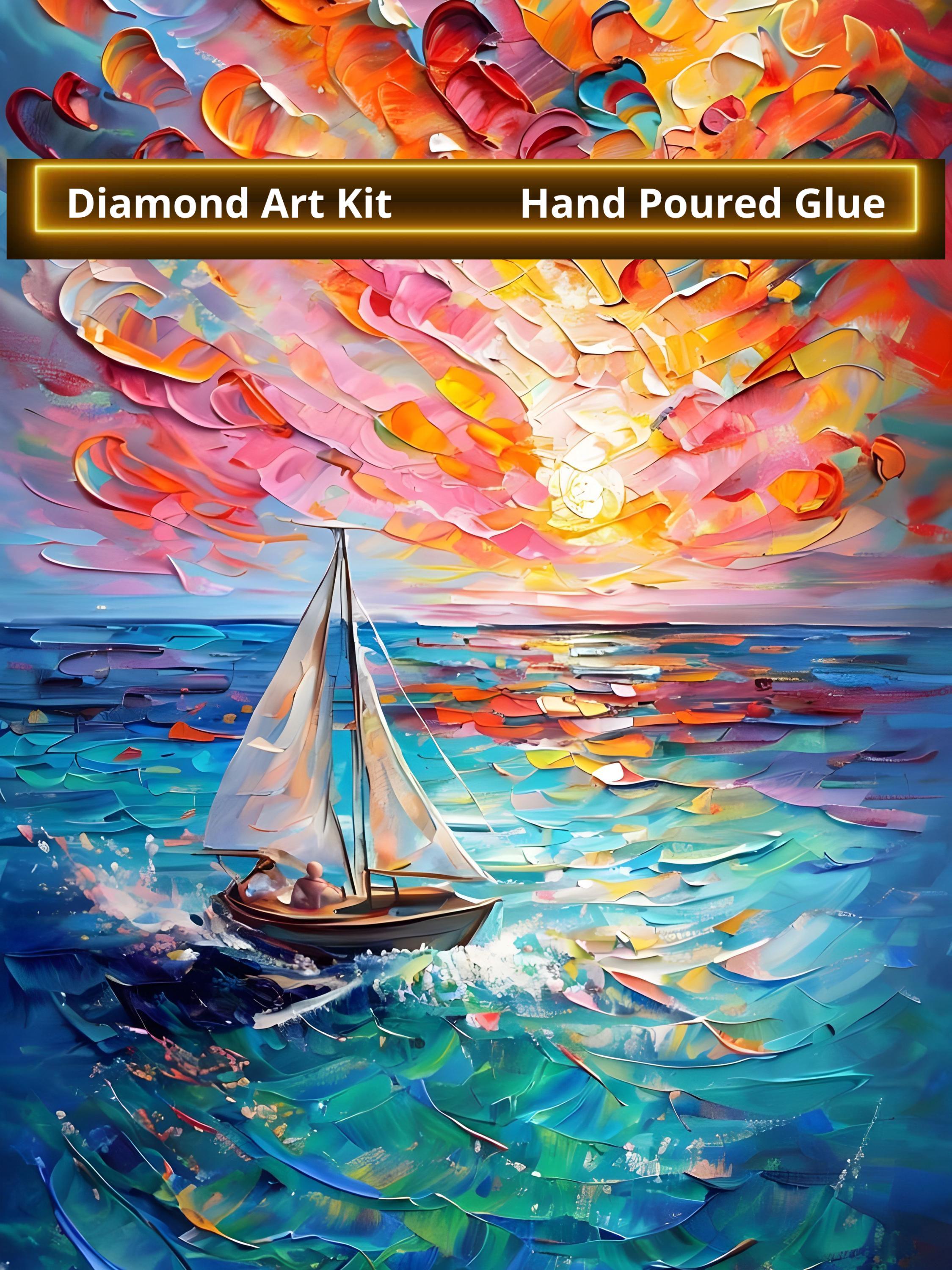 Sailboat in the Sea, DIY Diamond Painting with Frame - yes Framed Canvas! Large 20"x28"