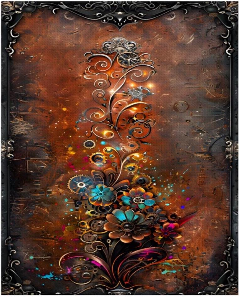 Diamond Painting, Steampunk, Copper And Mechanical Flowers, Diamond Paintings, DIY, 16”x20”, Diamond Art, 2 Designs, Customized