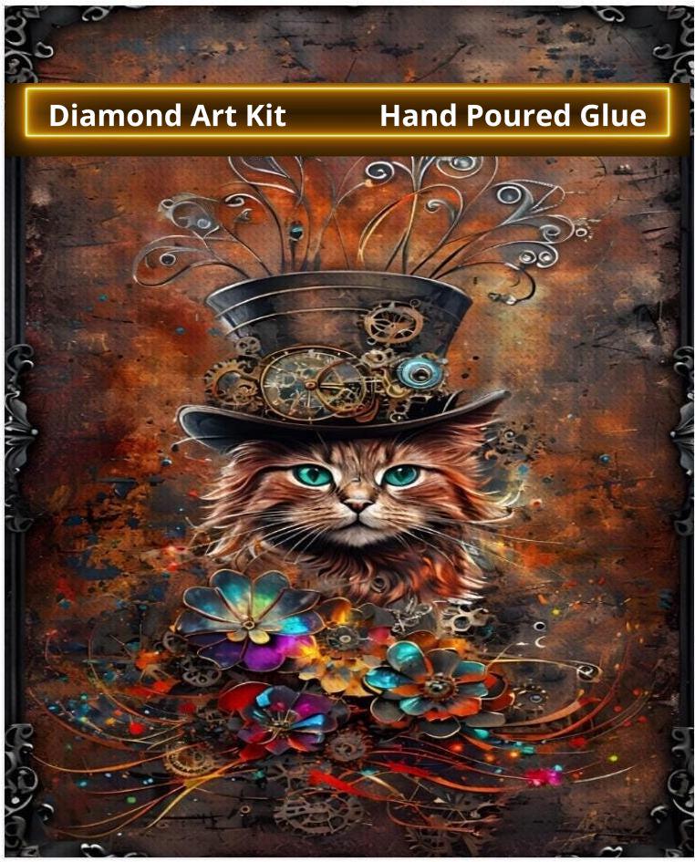 Diamond Painting, Steampunk, Black or Orange Cat In Top Hat, Diamond Paintings, DIY, 12”x16”, 16”x20”, 20”x28”, Diamond Art, 2 Designs, customized