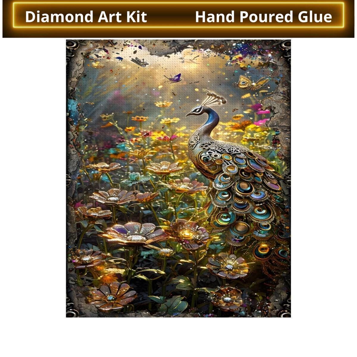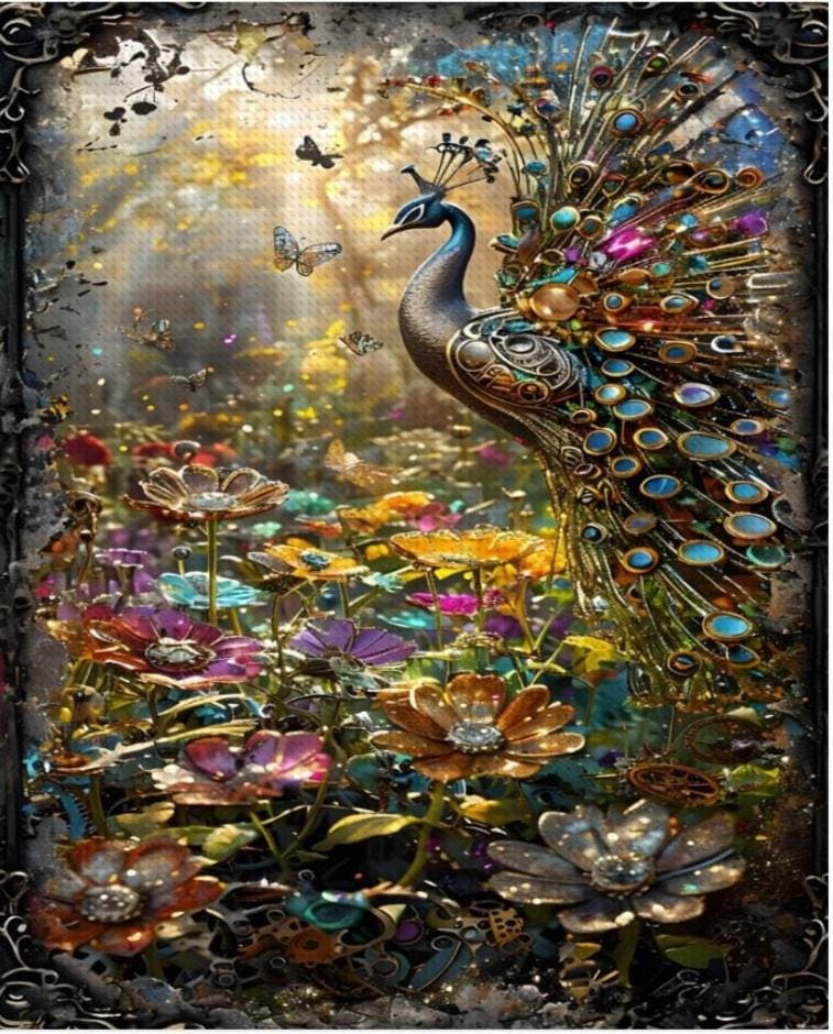 Diamond Painting, Steampunk Mechanical Wildflower Peacock, Diamond Paintings, DIY, 16”x20”, Diamond Art, 2 Designs, Customized