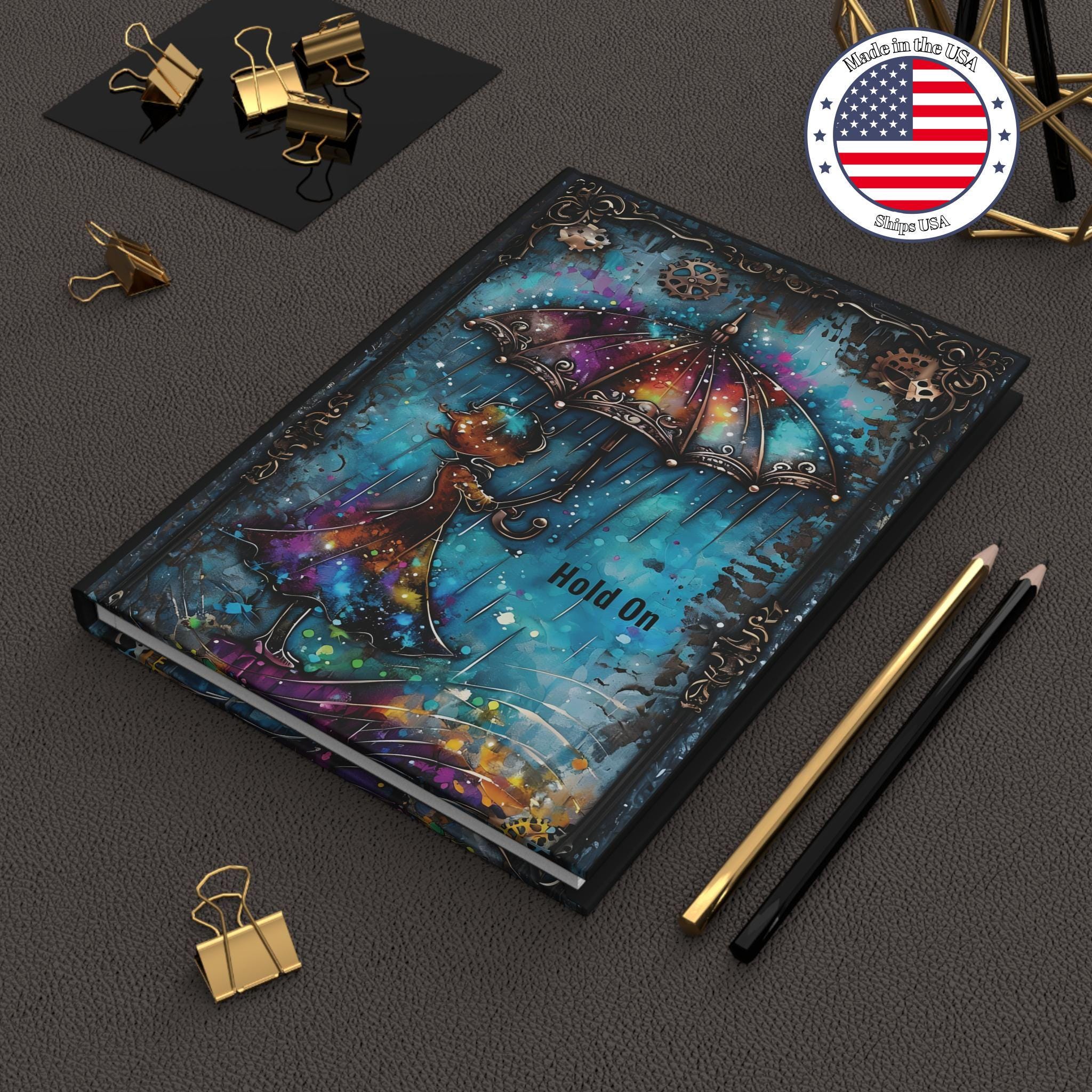 This Journal features a steampunk mechanical design with a girl holding an umbrella, offering a unique and vibrant look. Reminding you to Hold On. Perfect for creative individuals looking to jot down their thoughts and ideas. Ideal for writers, artists, and journal enthusiasts. Great for gifting during birthdays, Christmas, or back to school season.
