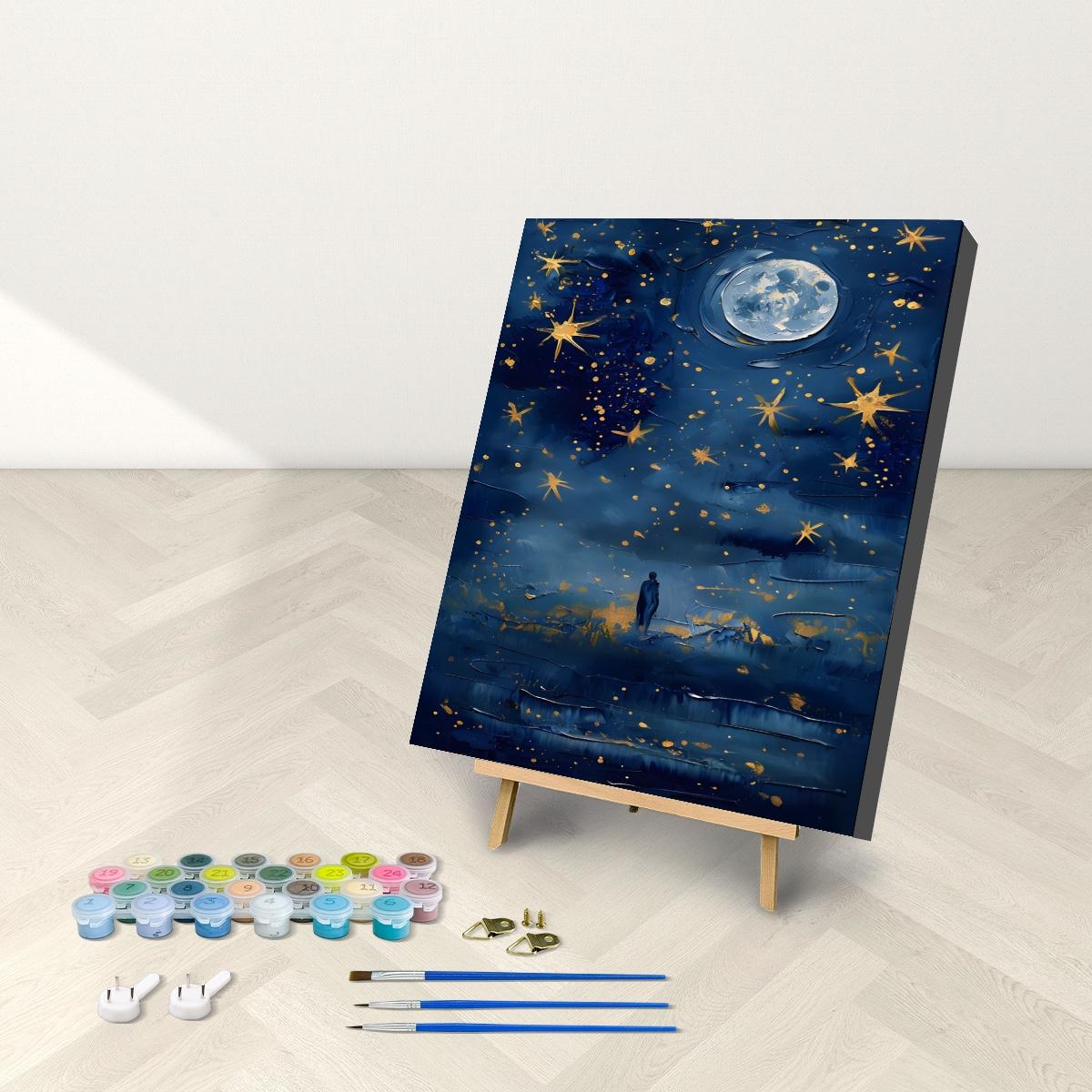 This Paint by Number Canvas Wall Art, Painting of Moonlight Night