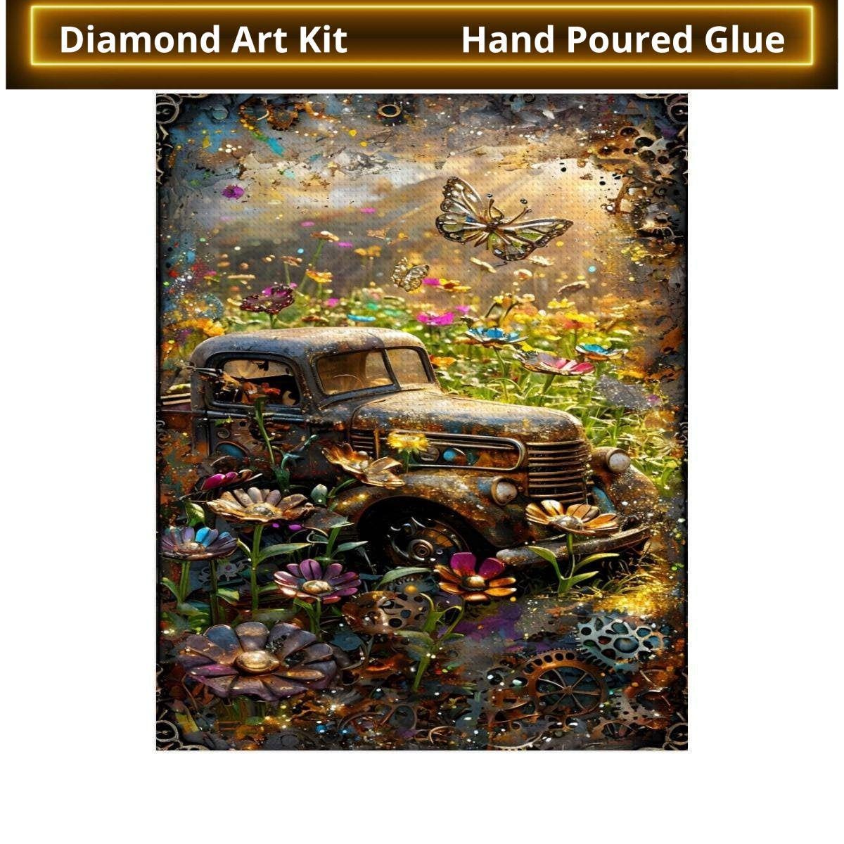 Diamond Painting, Old Truck, Wildflowers, Steampunk, Diamond Paintings, DIY, 16”x20”, Diamond Art, Diamond Kit, Diamond Painting Kit