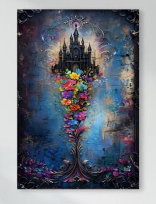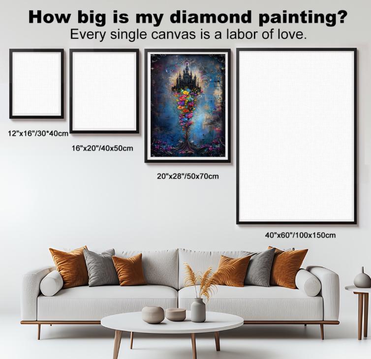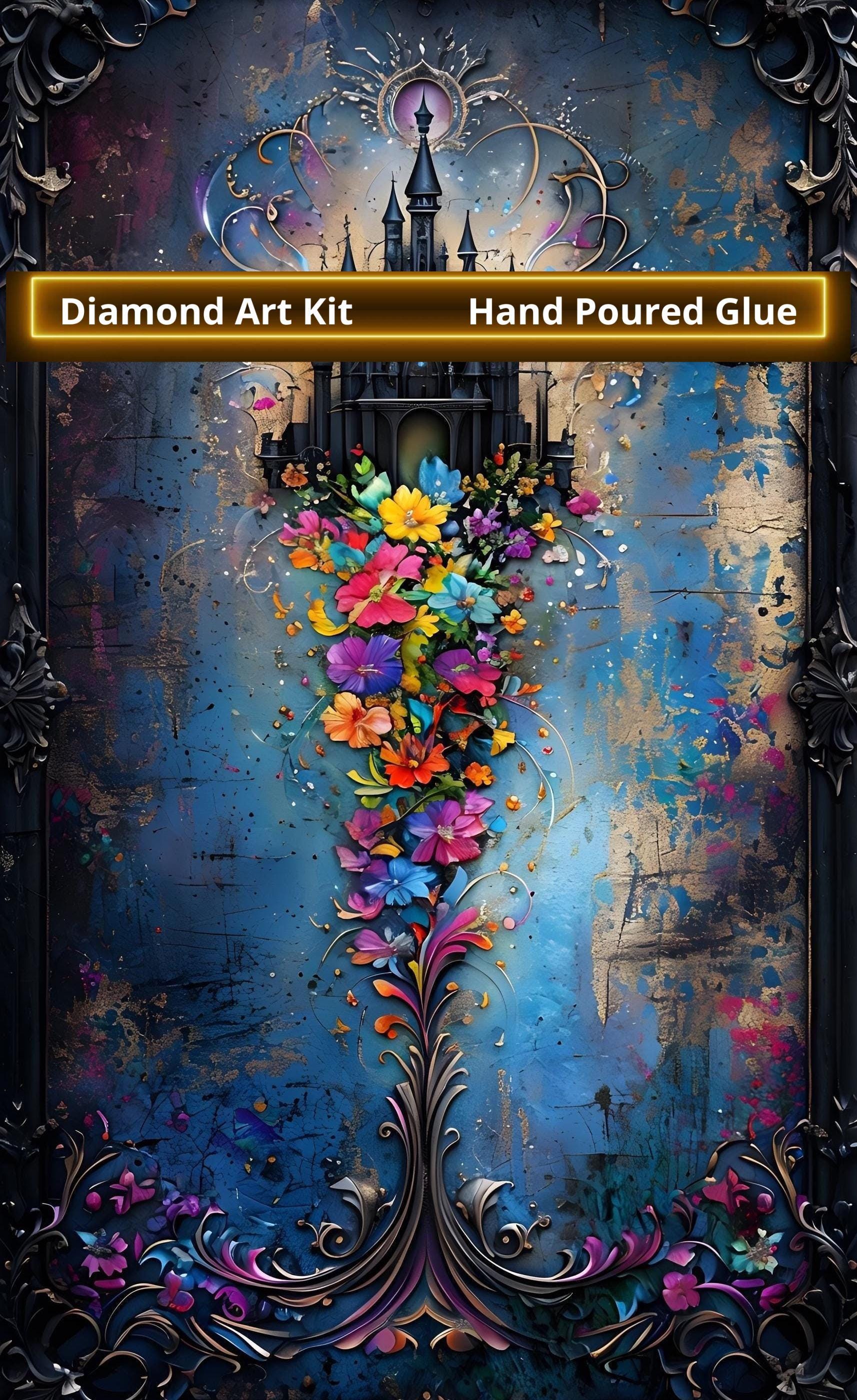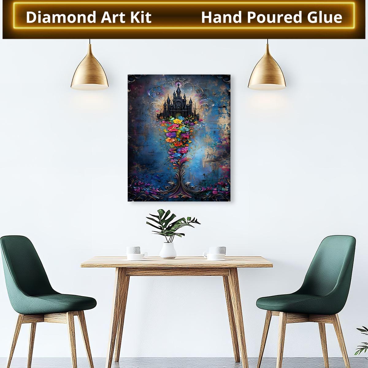 Diamond Painting, Castle, Vibrant Flowers, Diamond Paintings, DIY, 16”x20”, Diamond Art, Diamond Kit, Diamond Painting Kit, Diamond Art Kit