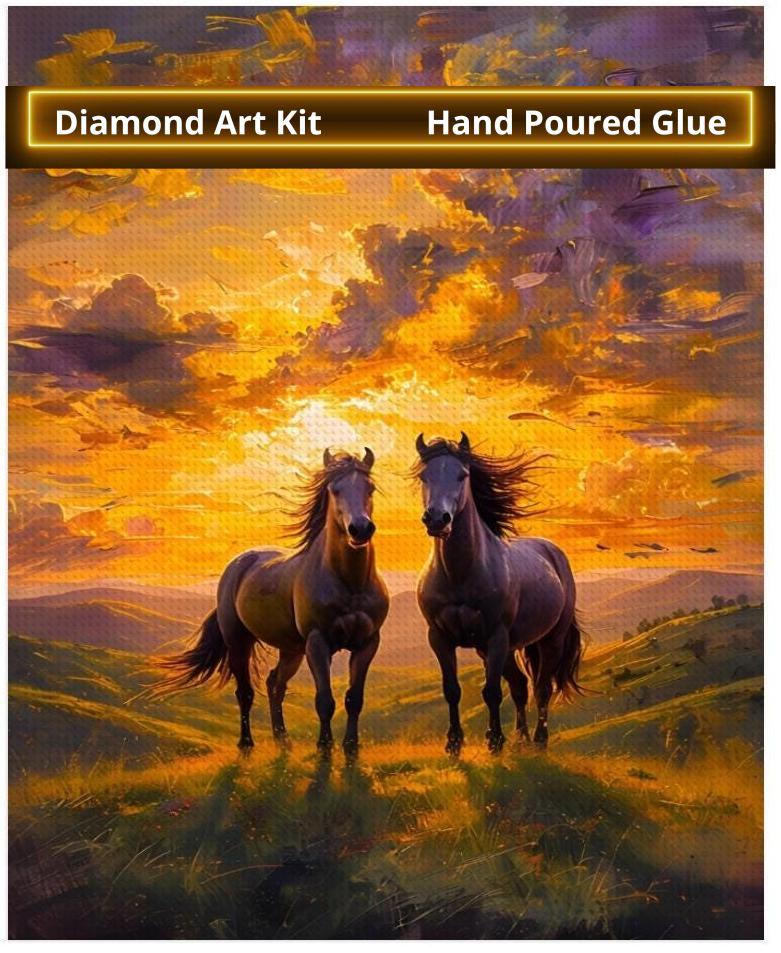 Diamond Painting, Majestic Stallions Standing Proudly In A Meadow, Diamond Paintings, DIY, 16”x20”, Diamond Art, 2 Designs, Customized