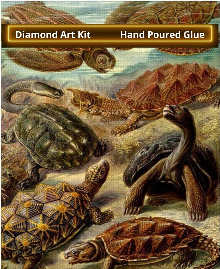 Diamond Painting, Vintage Art by Ernest Haeckel Design, Featuring Turtles, Diamond Paintings, DIY, 16”x20”, Diamond Art