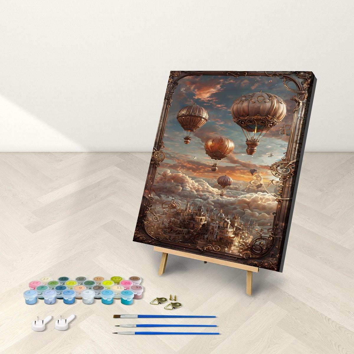 This Paint by Number Canvas Wall Art, Painting of Steampunk Mechanical Art - Hot Air Balloons