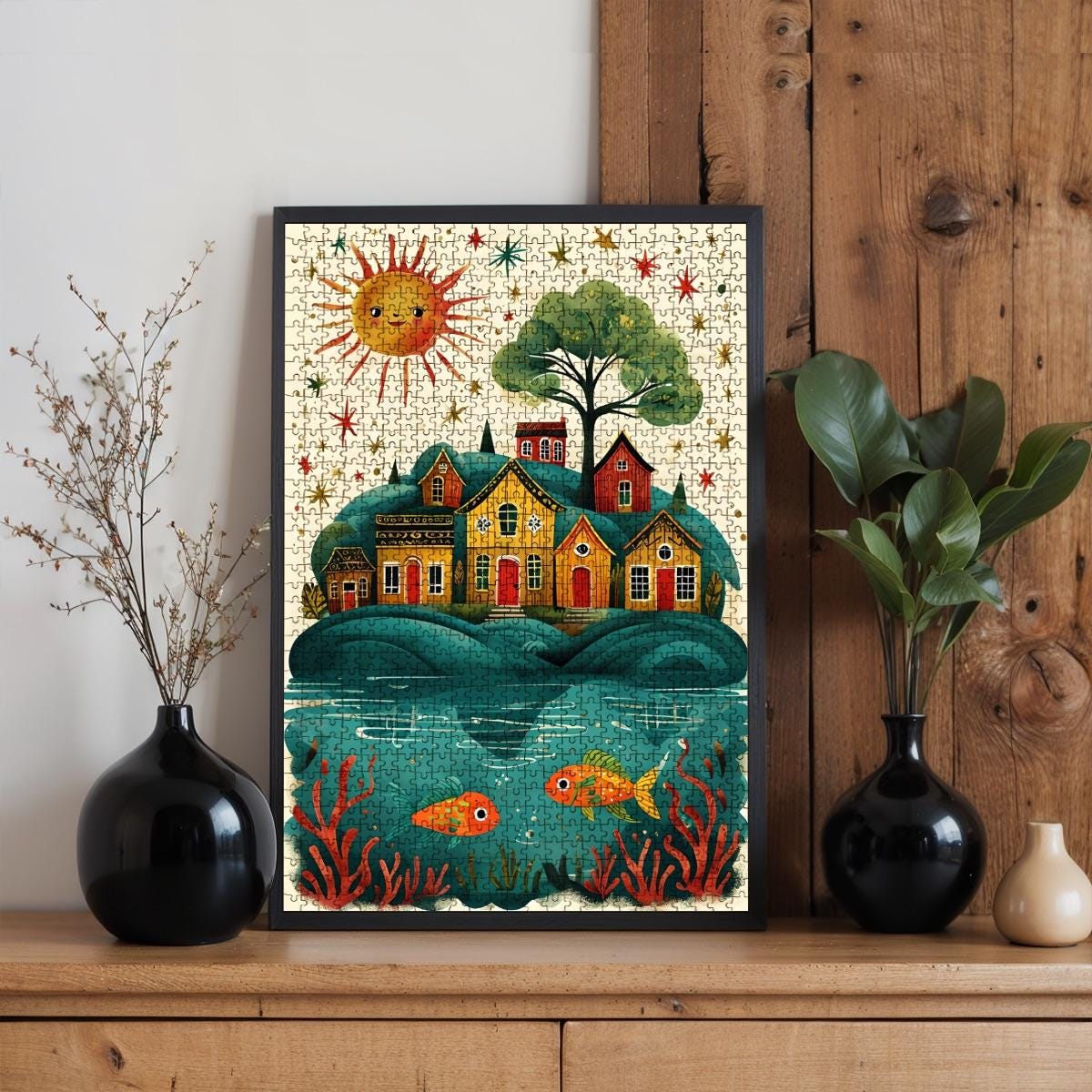This custom made Whimsical Fantasy Island Village design puzzle is perfect for family entertainment and parent-child interaction, enhancing focus and cognitive skills. It is an ideal choice for relaxation and stress relief, especially for adults in their leisure time. Once completed, the puzzle can be framed as decor, adding a personal touch to home or office spaces, and also makes a perfect gift for friends and family.