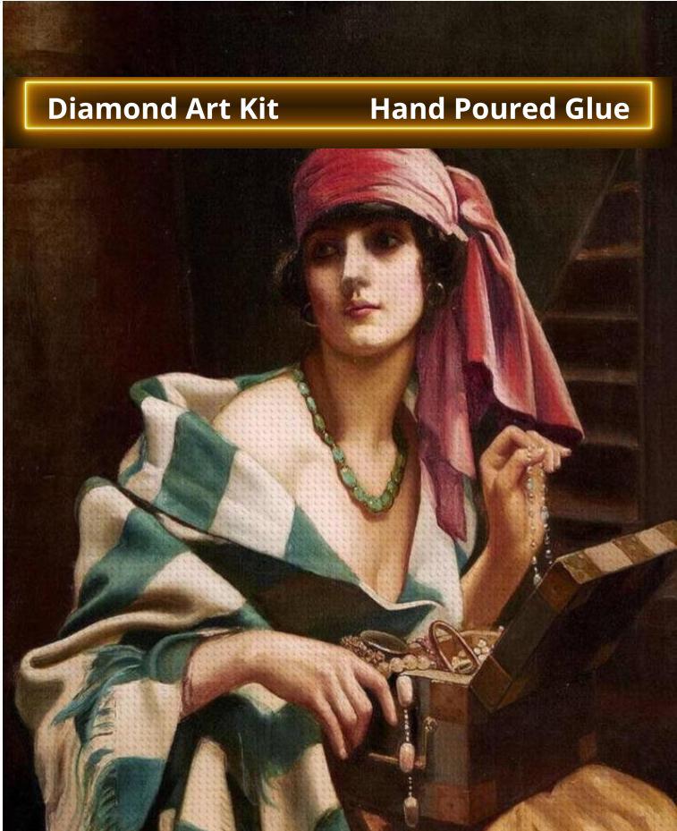 Diamond Painting, Pirate Woman with treasure chest vintage Art design from Harold H. Piffard Artwork, Diamond Paintings, DIY, 16”x20”, Diamond Art