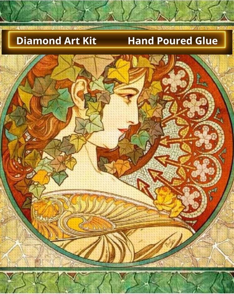 Diamond Painting, Vintage Art Design, Featuring Ivy Composition - by Alphonse Mucha , Vibrant, Diamond Paintings, DIY, 16”x20”, Diamond Art