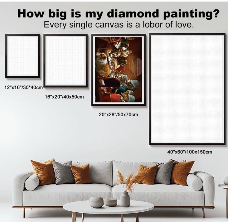 If you would like a 20”x28” unframed or 12”x16” unframed diamond art and it is not listed just message me and I will make one for you.