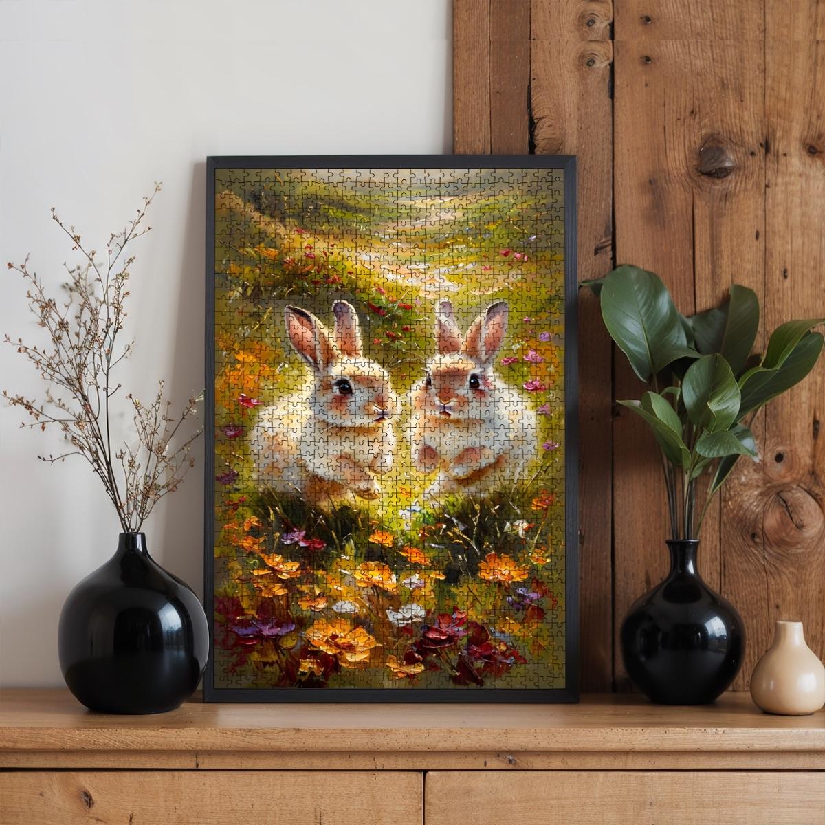 This custom made Bunnies in a Field of Flowers, design puzzle is perfect for family entertainment and parent-child interaction, enhancing focus and cognitive skills. It is an ideal choice for relaxation and stress relief, especially for adults in their leisure time. Once completed, the puzzle can be framed as decor, adding a personal touch to home or office spaces, and also makes a perfect gift for friends and family.