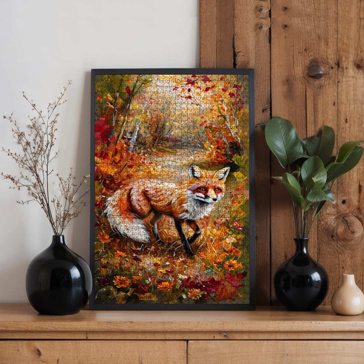 This custom made Fox in the Fall Forest design puzzle is perfect for family entertainment and parent-child interaction, enhancing focus and cognitive skills. It is an ideal choice for relaxation and stress relief, especially for adults in their leisure time. Once completed, the puzzle can be framed as decor, adding a personal touch to home or office spaces, and also makes a perfect gift for friends and family.