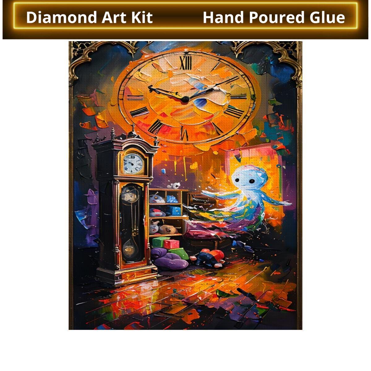Playroom Ghost Diamond Painting, DIY Art Kit, Grandfather Clock Theme, Hands of Time, Room Decor, Creative Gift