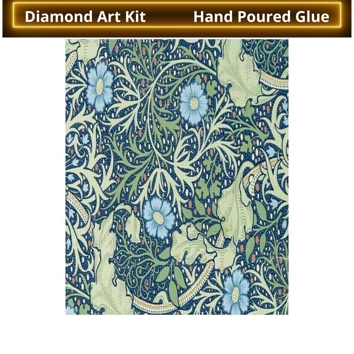 William Morris DIY Diamond Painting, Blue Flowers, Vines, Vintage Art, DIY Kit, Adult Craft, Wall Art, Gift Idea