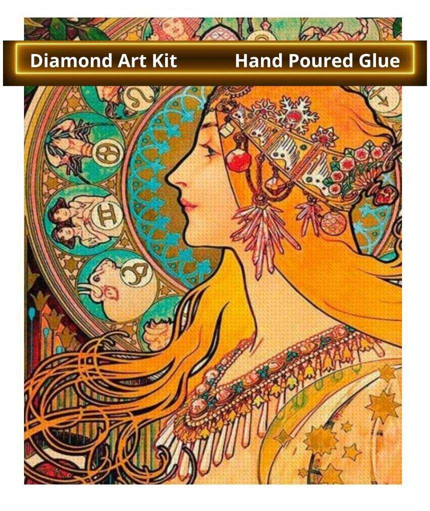 Diamond Painting, Vintage Art Design, Featuring Zodiac 1896 - by Alphonse Mucha Vibrant, Diamond Paintings, DIY, 16”x20”, Diamond Art