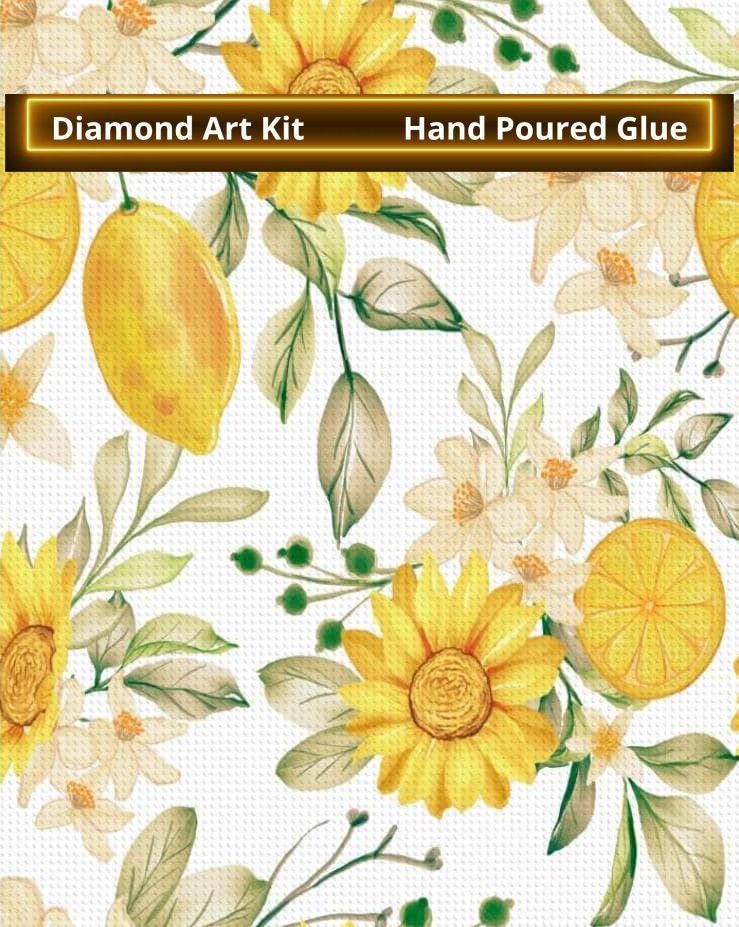 Lemons and Flowers Art Design, White & Yellow Flowers, Lemon Branch