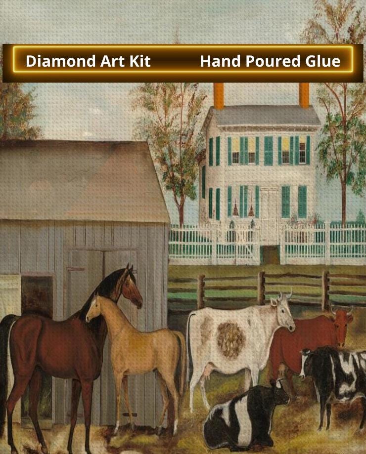 Diamond Painting, Vintage Art Design, Featuring Amzi Emmons Zeliff - The Barnyard Diamond Paintings, DIY, 16”x20”, Diamond Art