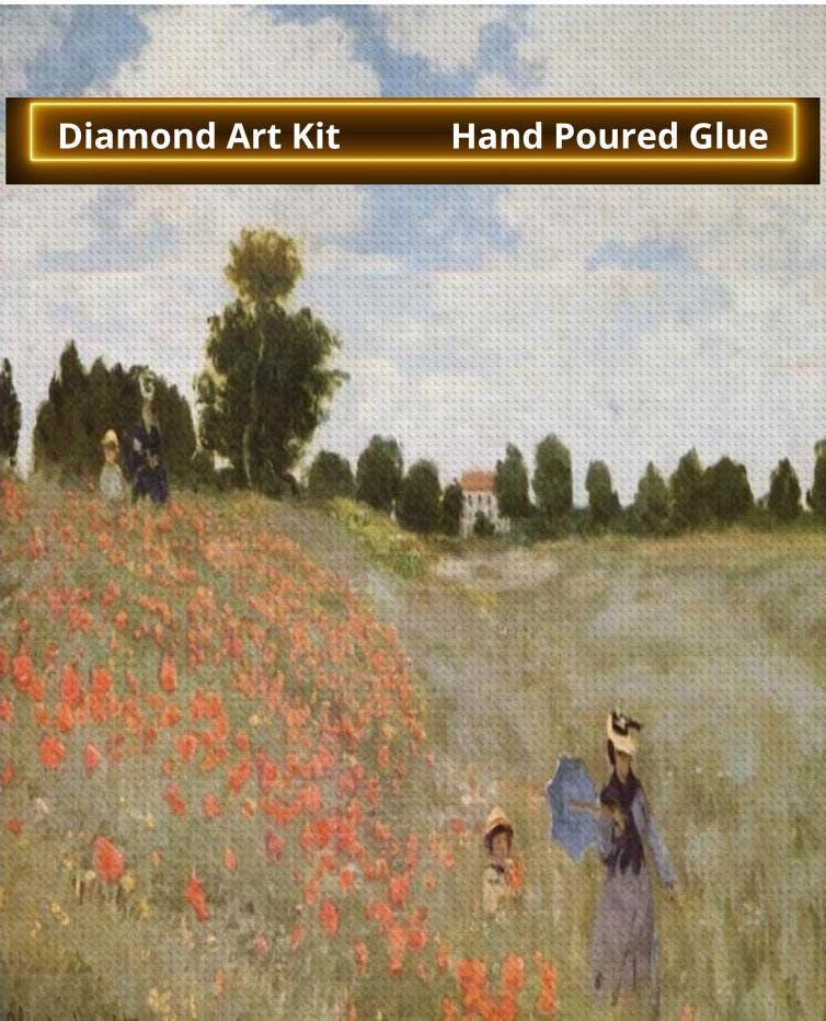 Transform your space with this exquisite Diamond Painting featuring Claude Monet's Poppy Fields near Argenteuille with Woman and child walking. This DIY Diamond Art kit includes everything you need to create a stunning 16”x20” masterpiece.