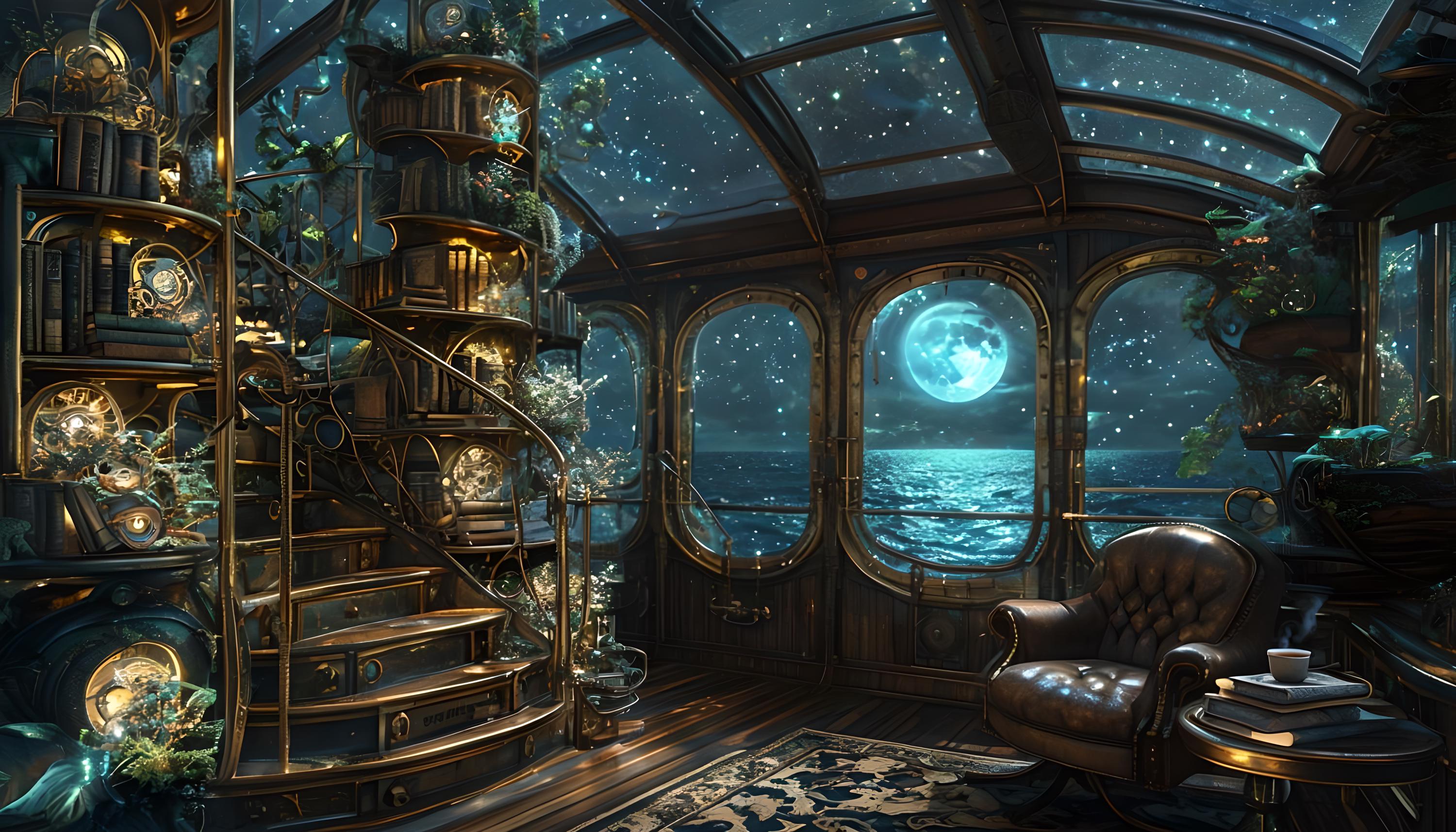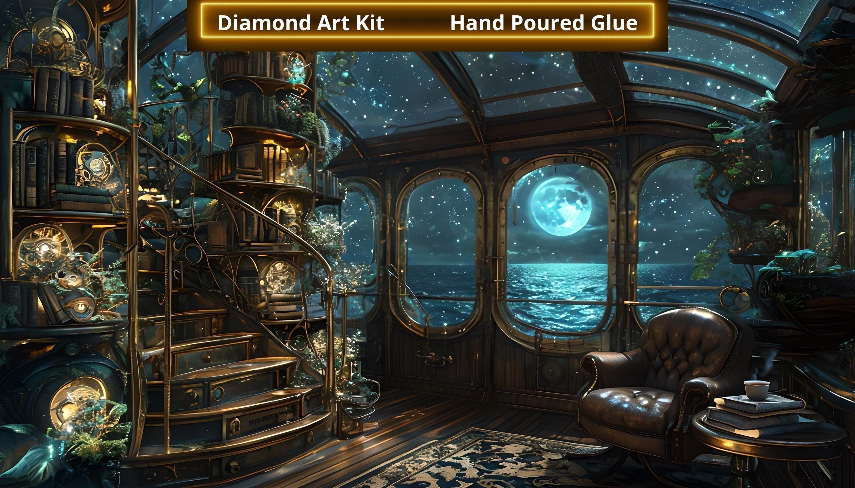 Sailors, Captains View, DIY Diamond Painting, Library garden night sky view from Ship with Full Moon View, Diamond Art Craft Kit, Magical Night Sky View