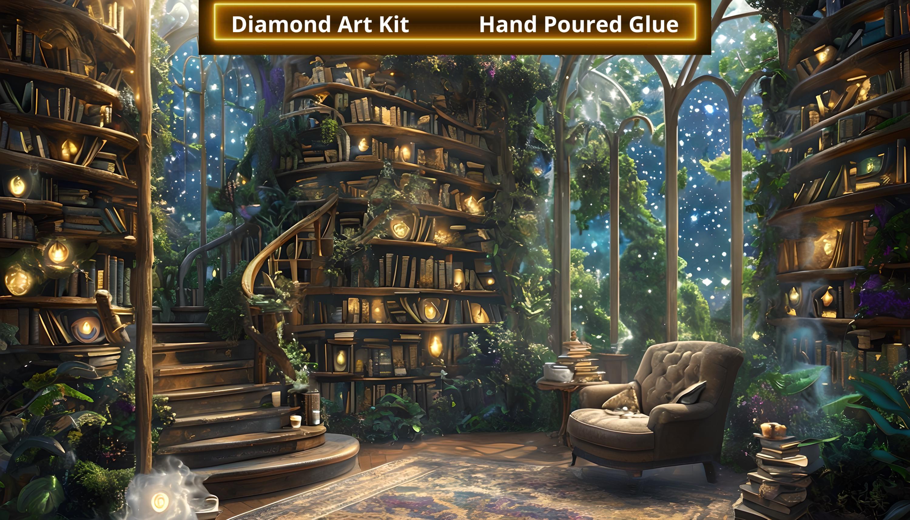 Dream Library, DIY Diamond Painting, Star Filled Sky Library Reading Garden Lounge Room, Diamond Art Kit, PBN, Full Craft Kit, Starry Night, Full Round Diamonds, Poured Glue