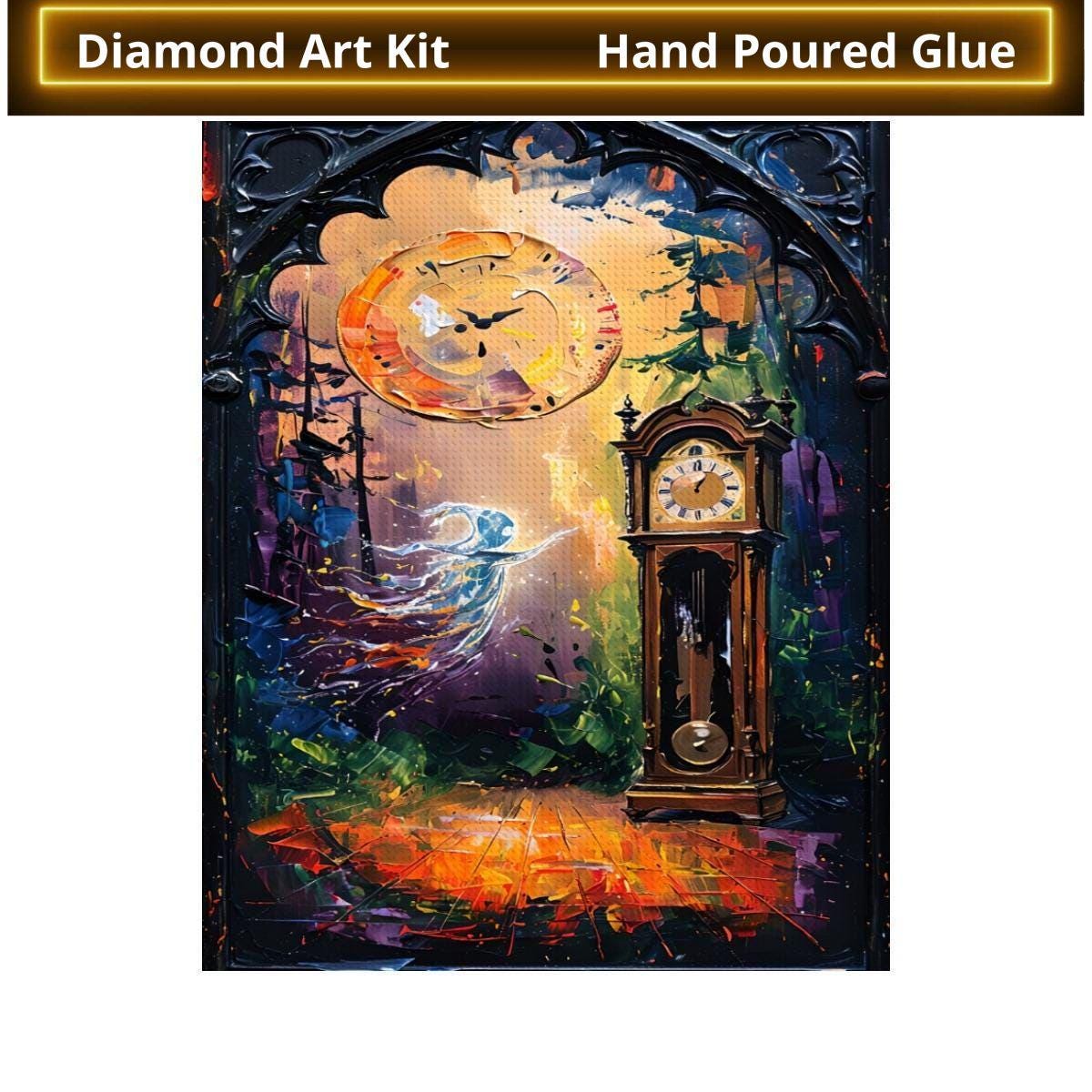 Grandfather Clock DIY Diamond Painting, Forest Ghost, Hands of Time, Diamond Art Kit, Craft Kit, Art Hobby