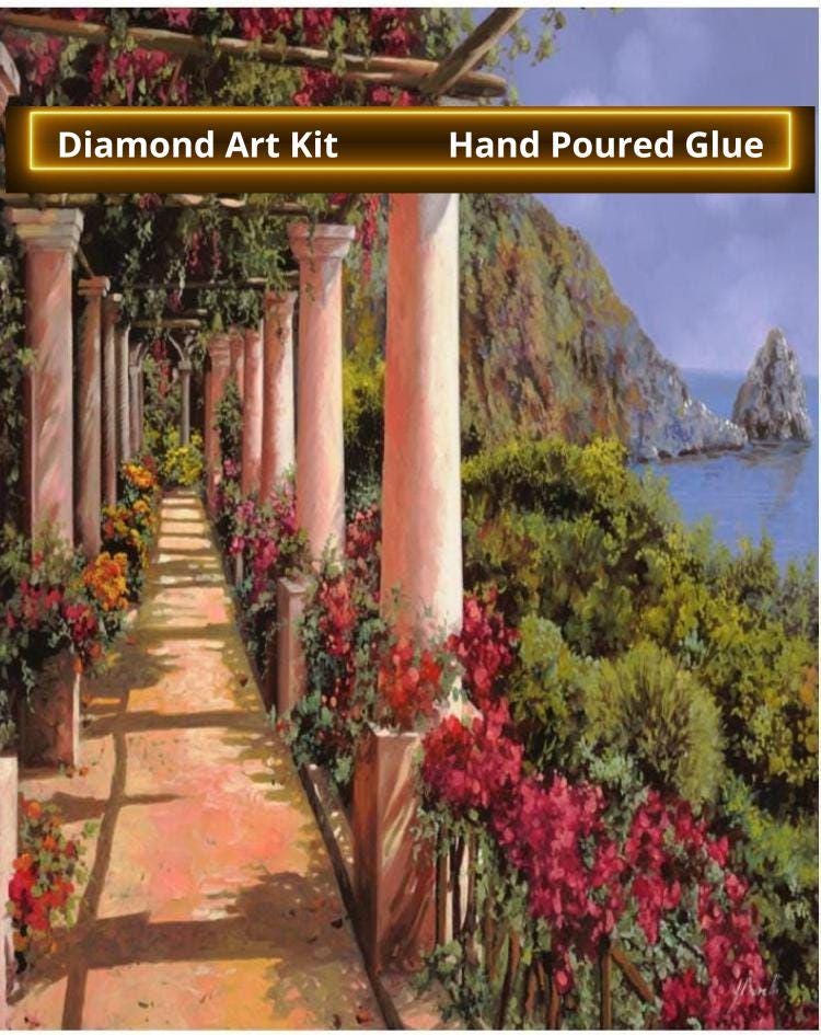 Diamond Painting, Vintage Art by Guido Borelli Design, Featuring Seaside Columns and Landscape, Vibrant, Diamond Paintings, DIY, 16”x20” Vertical or 20”x28” Horizontal Diamond Art