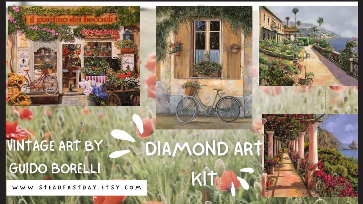 Il Mercato Dei Fiori #1 by Guido Borelli, Diamond Painting, Vintage Art by Guido Borelli Design, Featuring Marketplace, Vibrant, Diamond Paintings, DIY, 16”x20”, Diamond Art