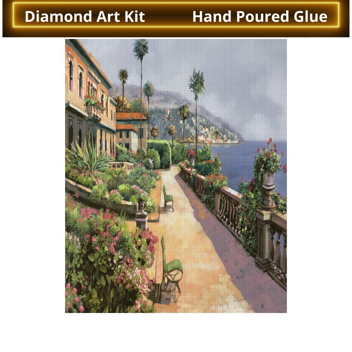 Diamond Painting, Vintage Art by Guido Borelli Design, Featuring Italian Town Sea View, Vibrant, Diamond Paintings, DIY, 16”x20”, Diamond Art
