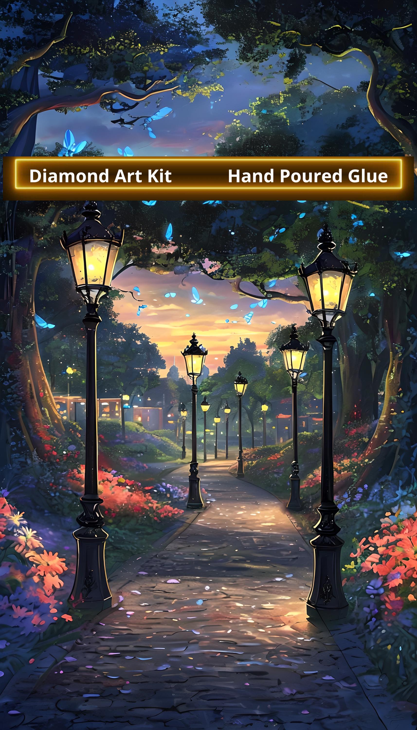 Diamond Painting, Paris Path, Lantern Walkway, Floral Path, Art, Diamond Paintings, DIY, 16”x20”, Diamond Art, Diamond Kit, Poured Glue