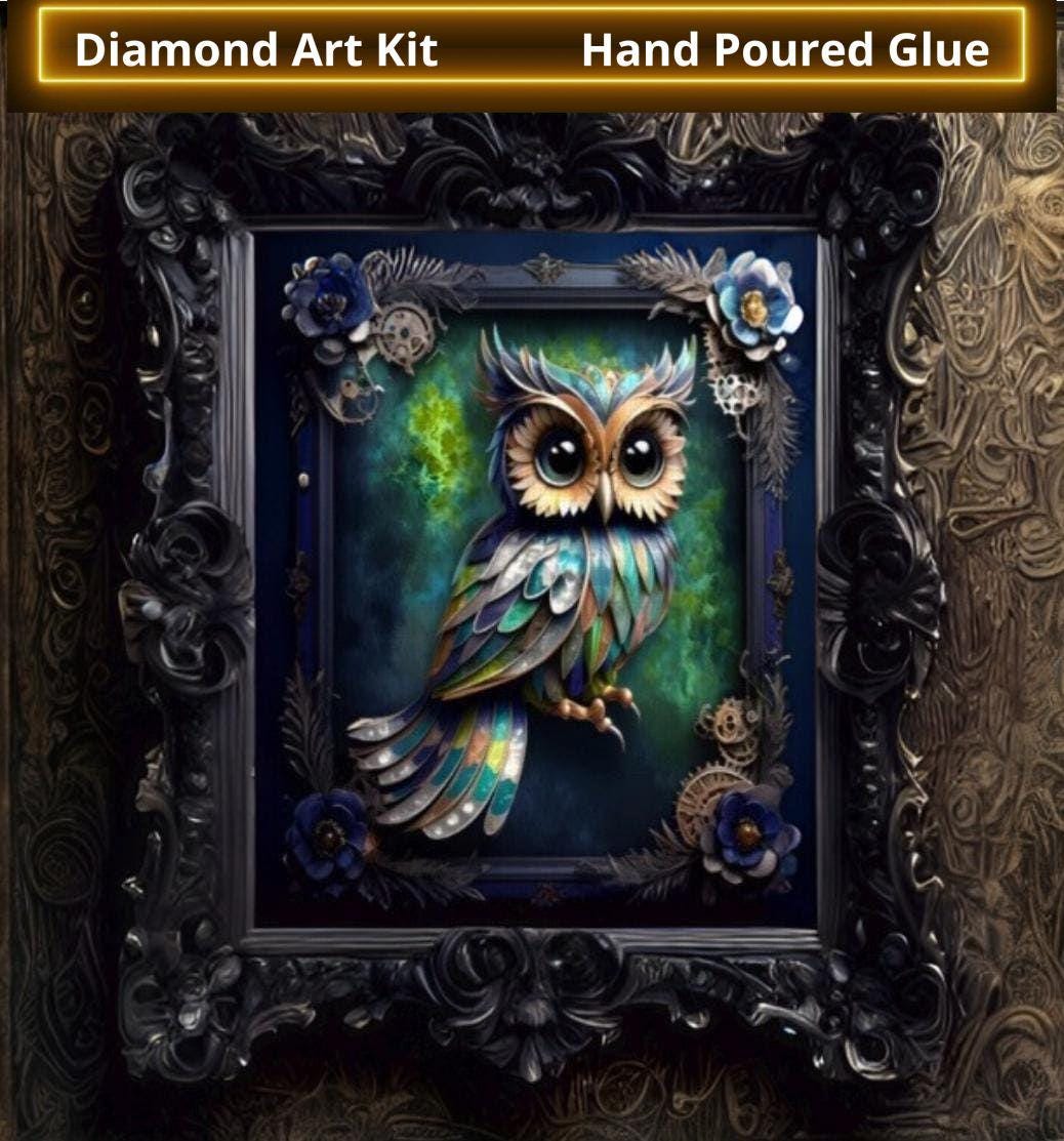 Diamond Painting, Vibrant Owl Steampunk Flower Art design, Diamond Paintings, DIY,12”x16” or 16”x20”, Diamond Art