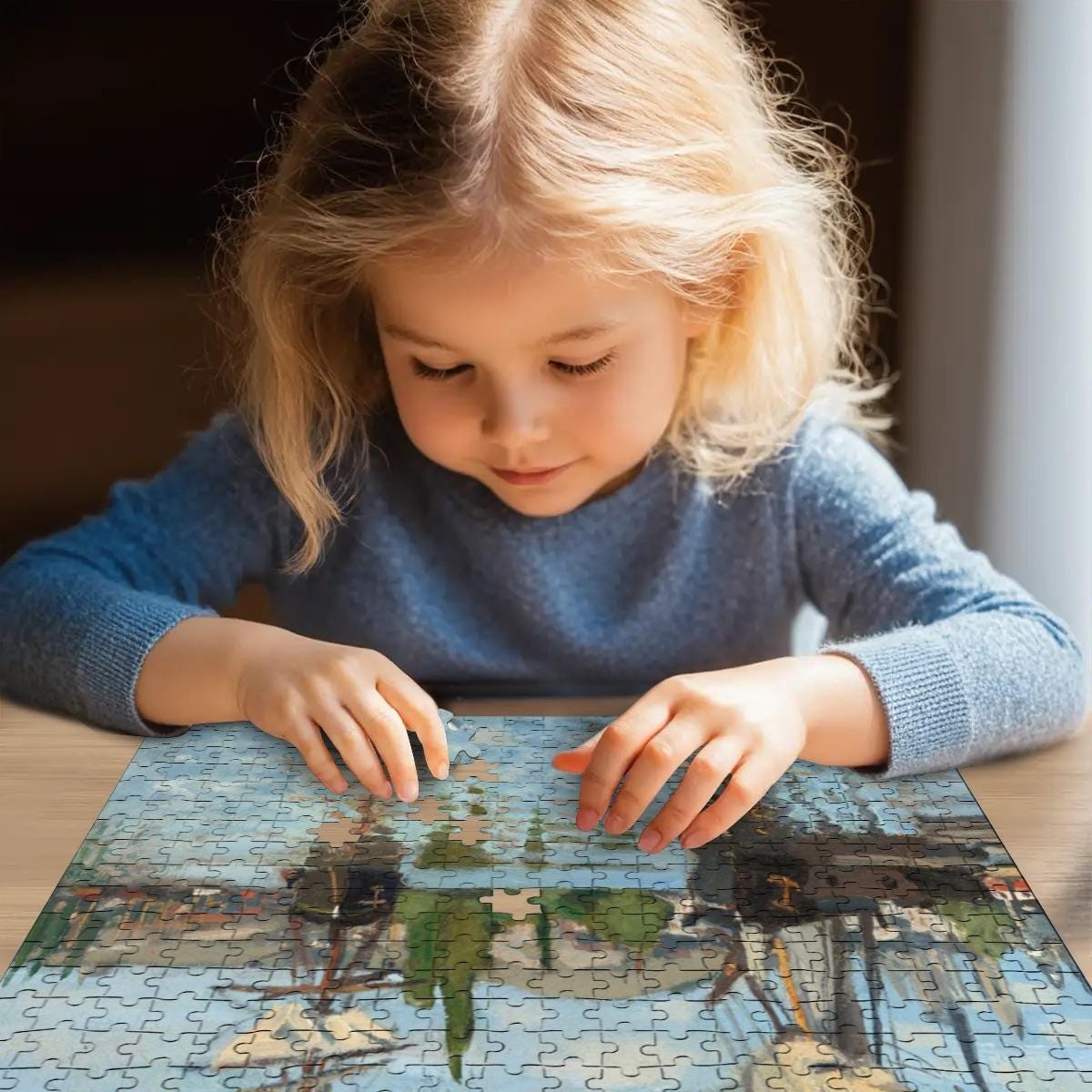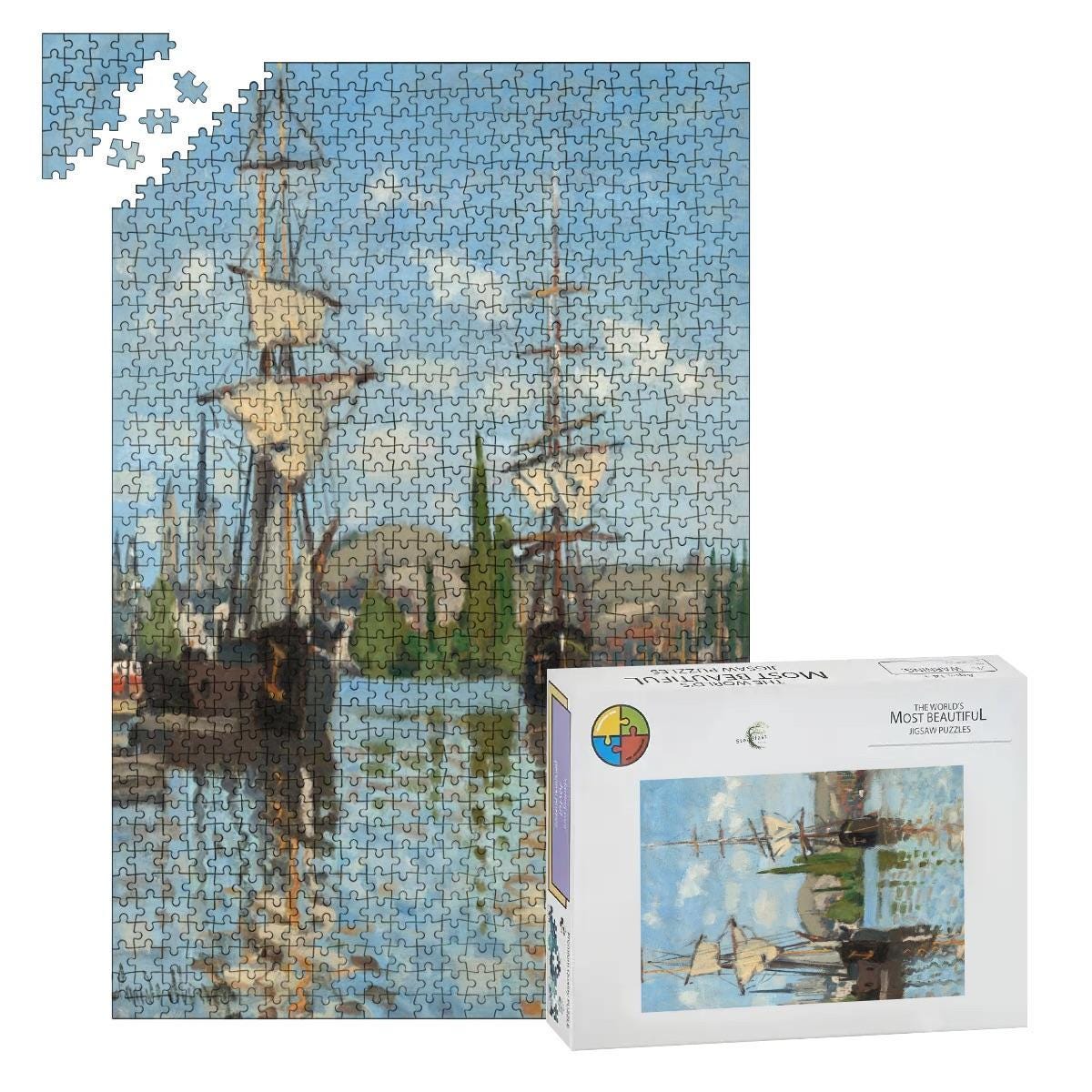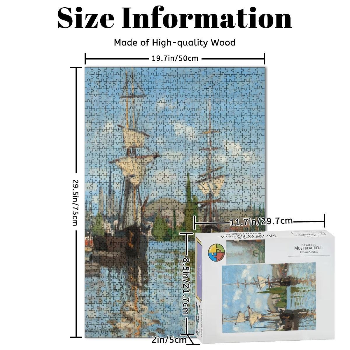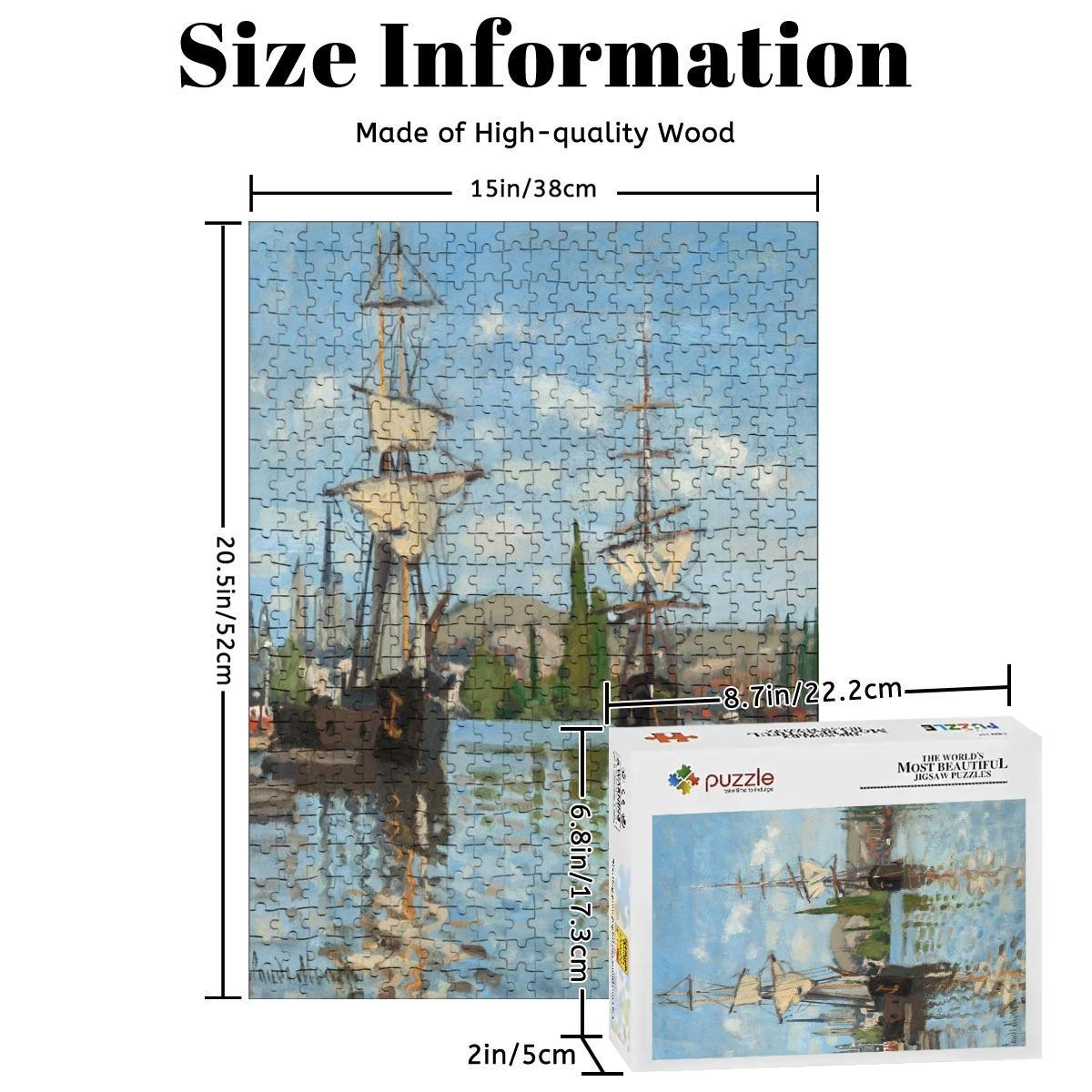 Bring the beauty of Claude Monet into your home with this stunning wooden jigsaw puzzle, featuring Ships Riding on the Seine at Rouen. Crafted for collectors, puzzle lovers, and art enthusiasts, this premium puzzle offers both a relaxing experience and a stunning display piece when finished.