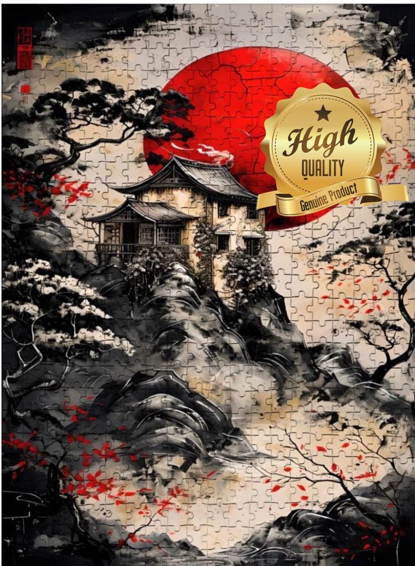 Jigsaw Puzzles: House on a Cliff with Red Sun, Precision Cut, Wood, 300, 500 or 1000 pieces. An ideal choice for relaxation and stress relief, especially for adults during leisure time. Once completed, the puzzle can be framed as decor, adding a personal touch to home or office spaces, making it a perfect gift for friends and family.