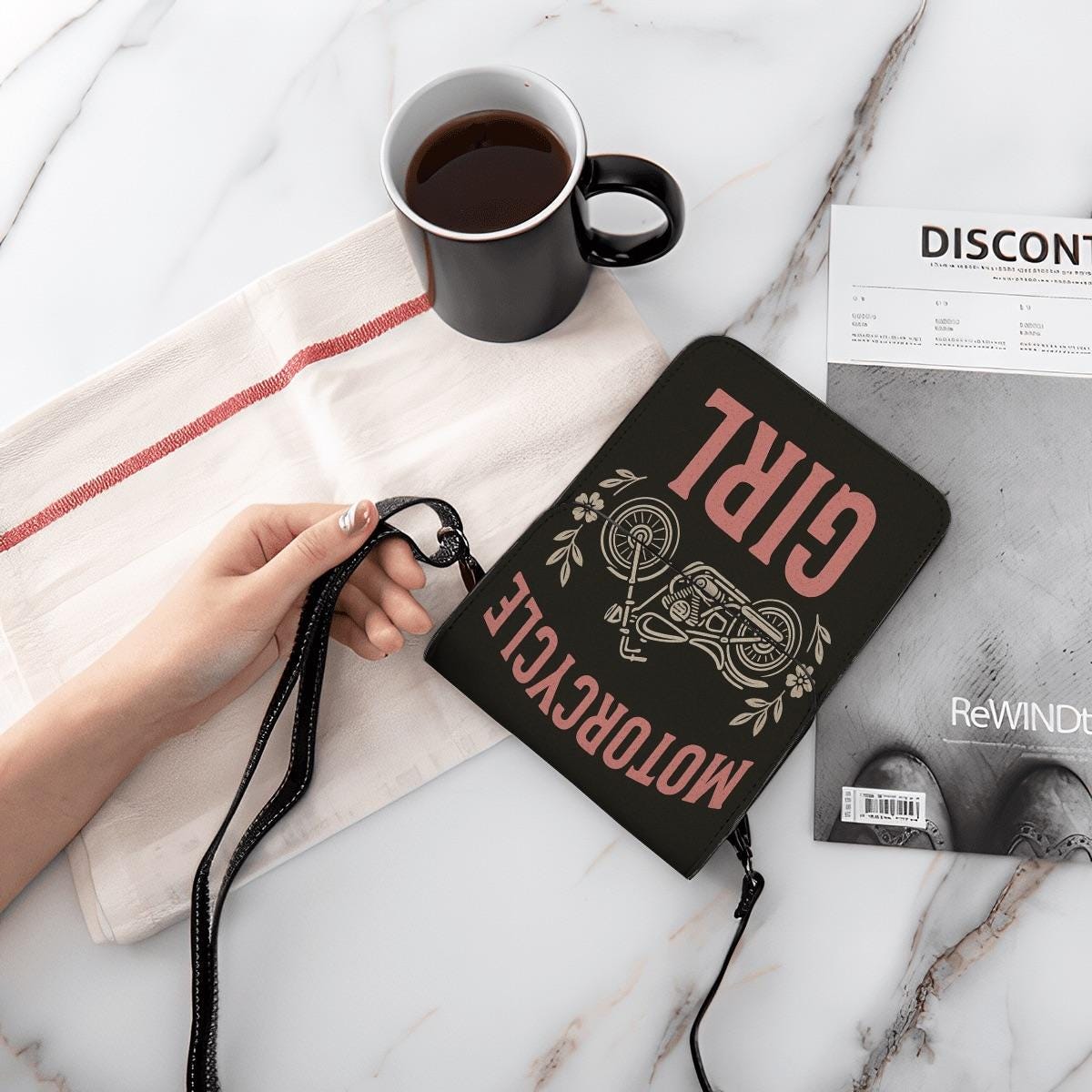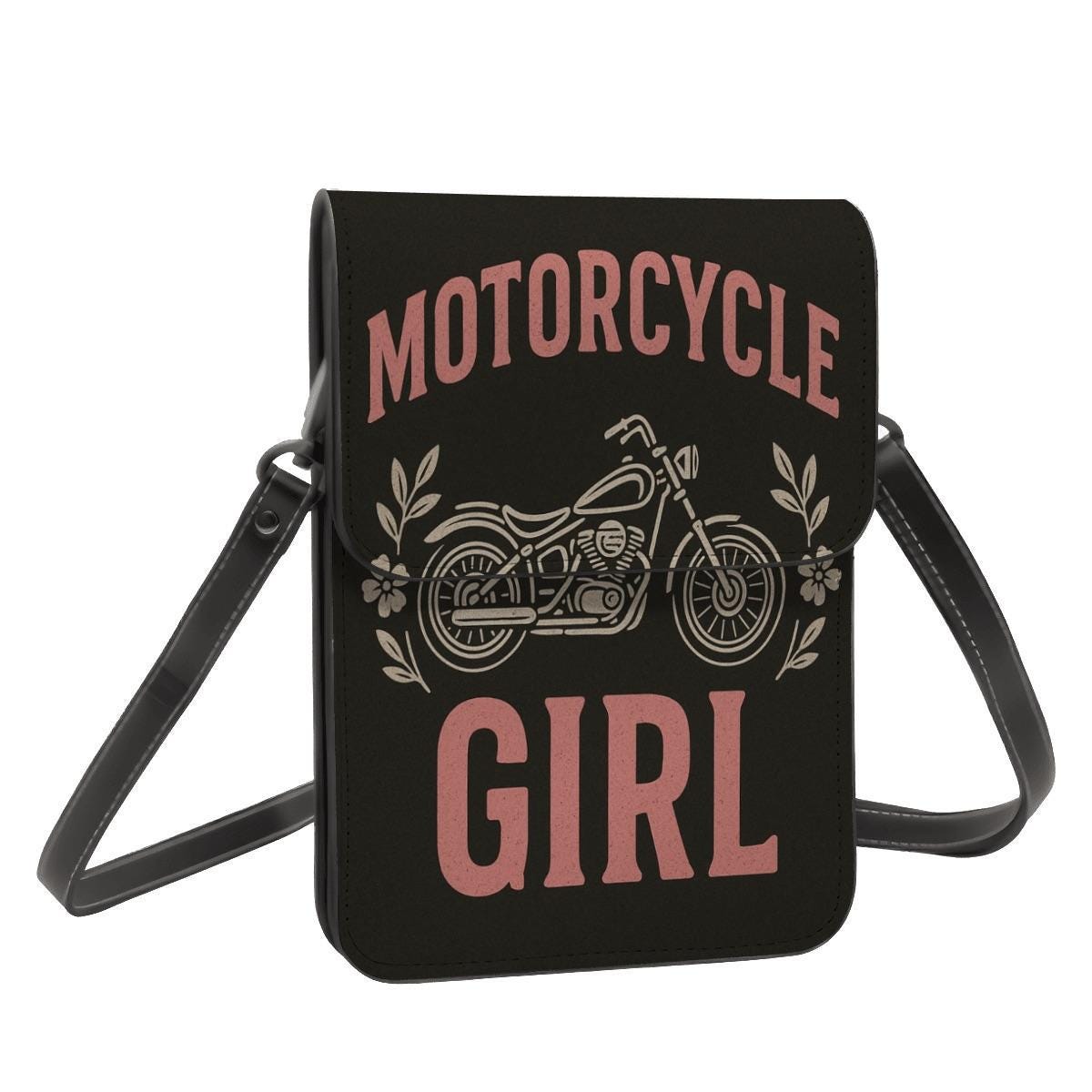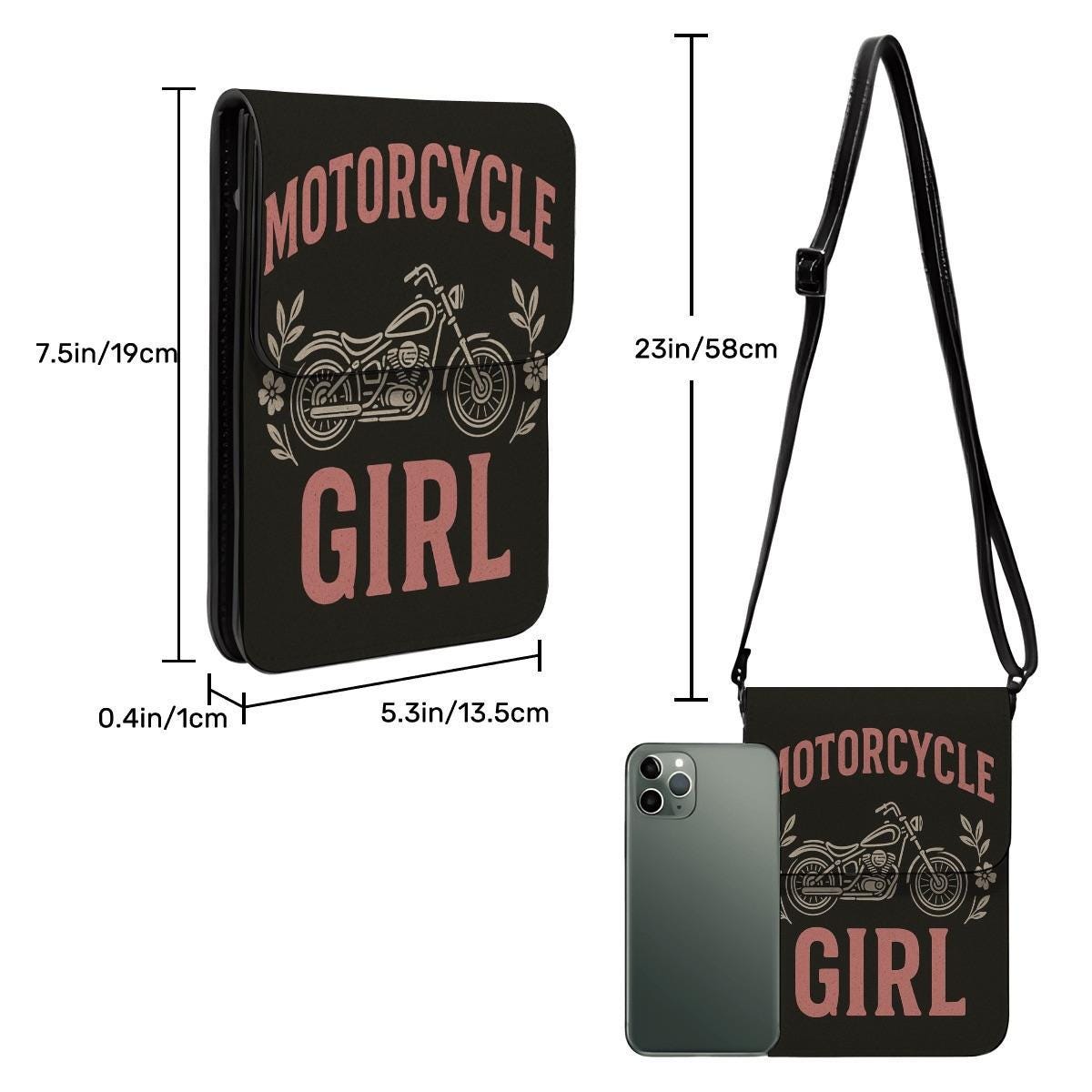 Leather Cell Phone Purse With Shoulder Strap, Motorcycle Girl in Pink