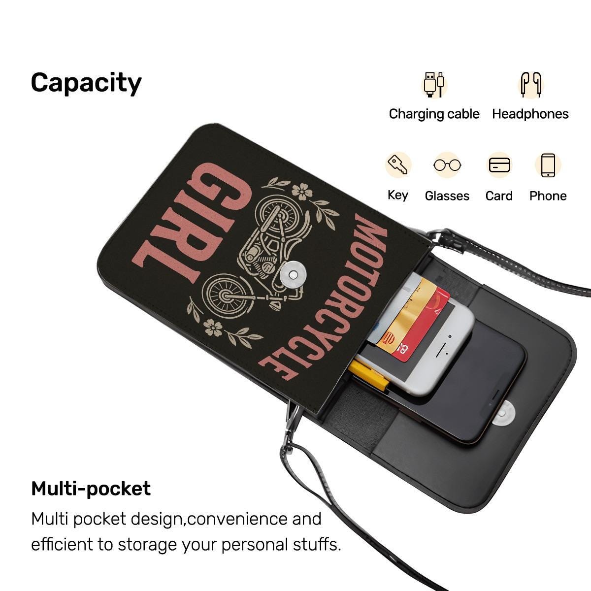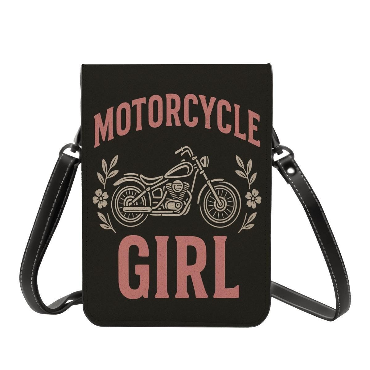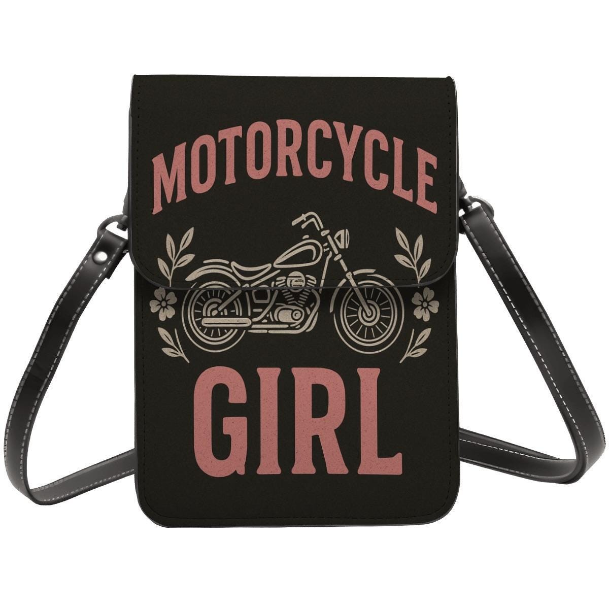 Leather Cell Phone Purse With Shoulder Strap, Motorcycle Girl in Pink