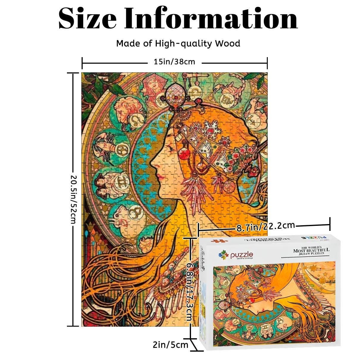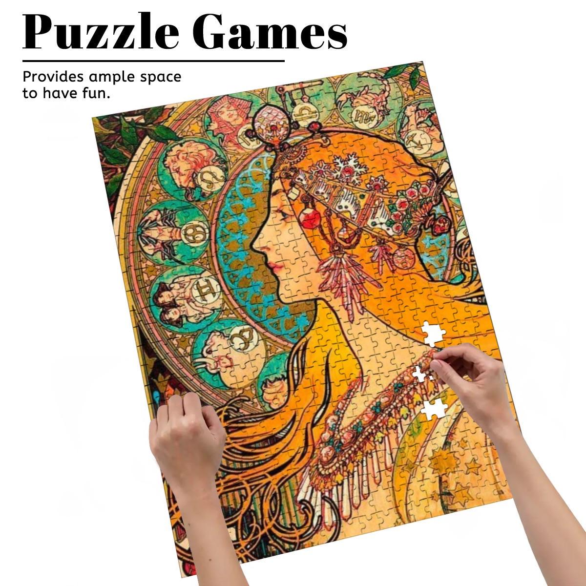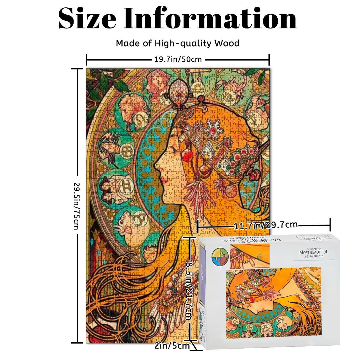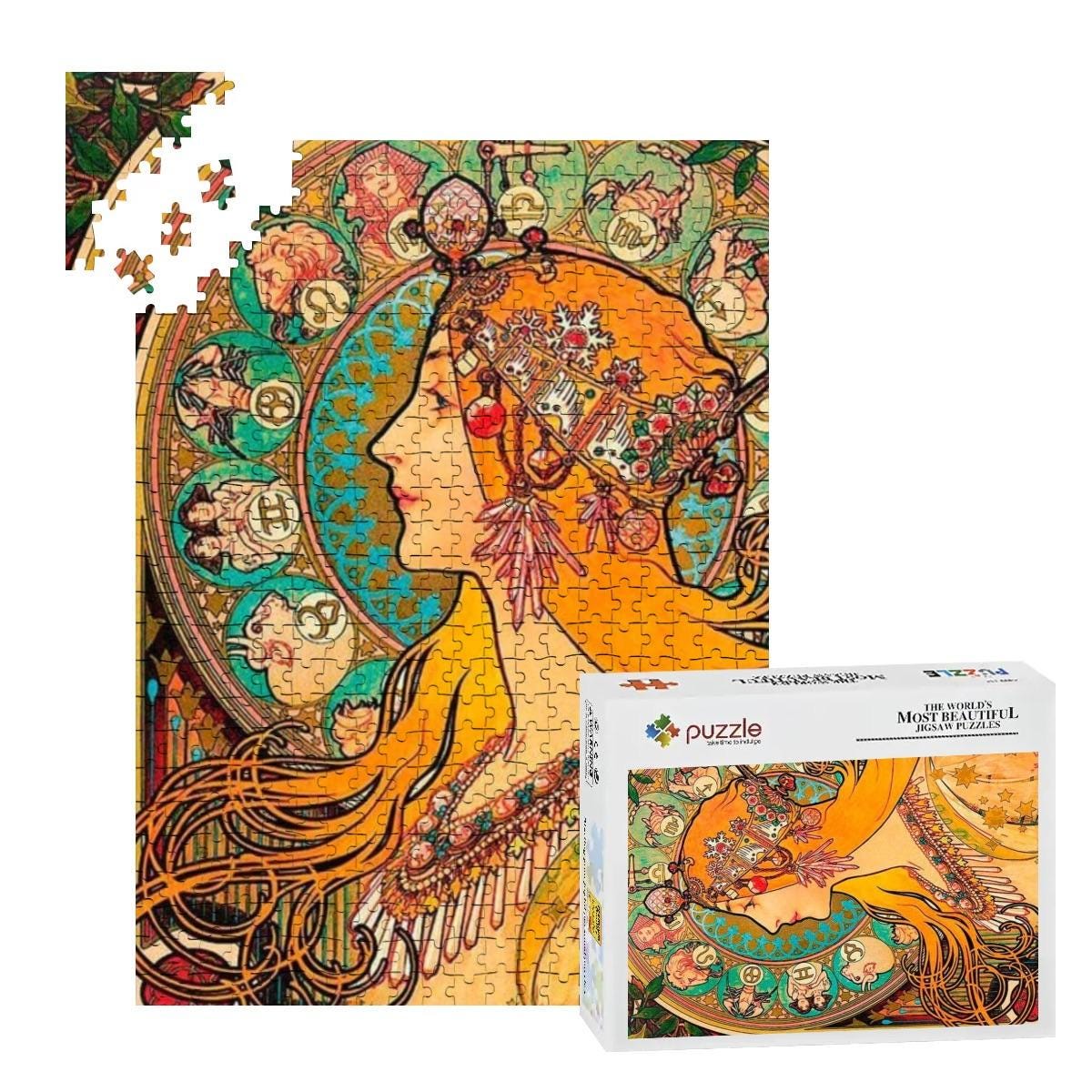 🌙 Zodiac, 1896 — Alphonse Mucha Art Nouveau Wooden Jigsaw Puzzle (500 or 1000 Pieces)