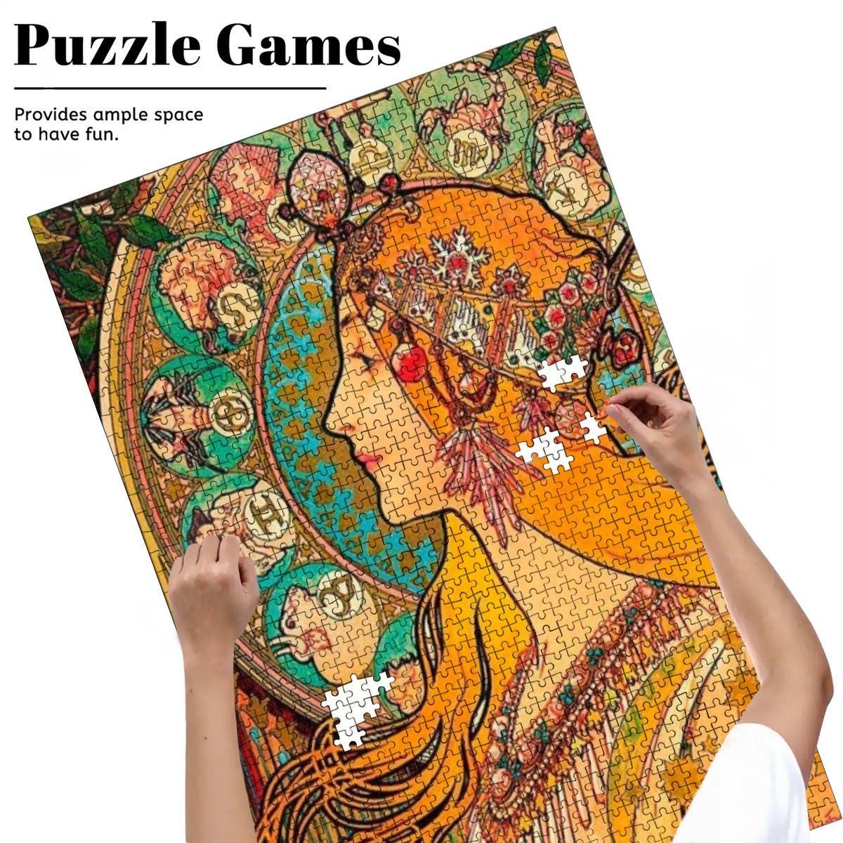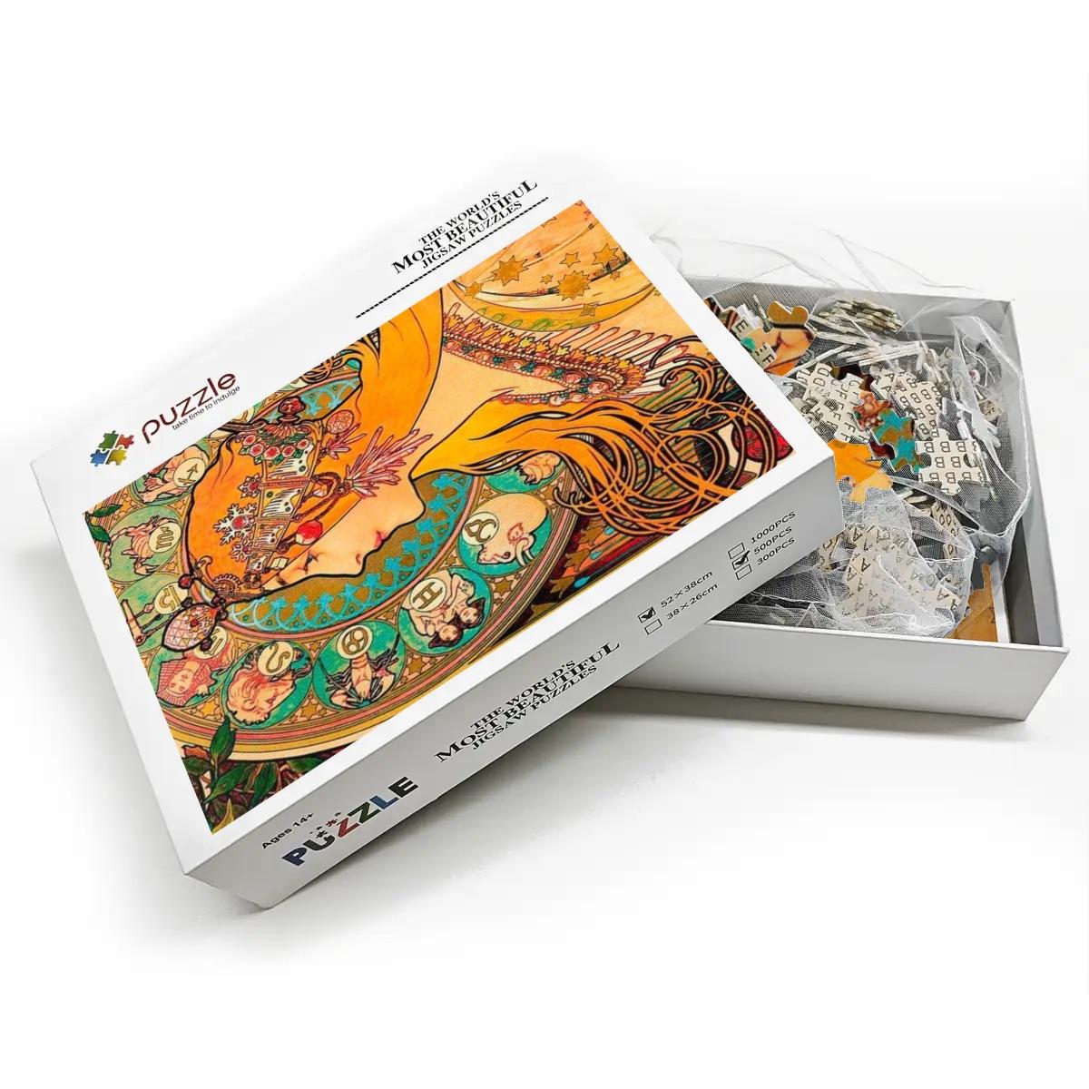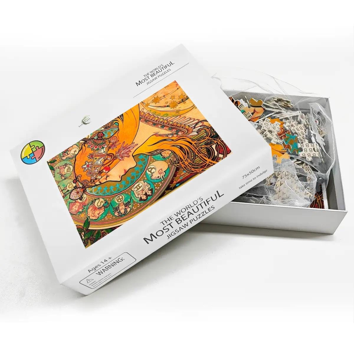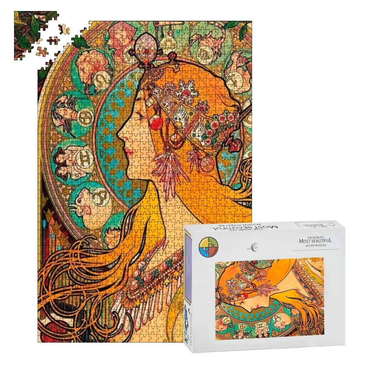 🌙 Zodiac, 1896 — Alphonse Mucha Art Nouveau Wooden Jigsaw Puzzle (500 or 1000 Pieces)