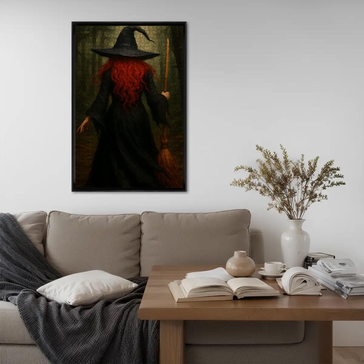 A mysterious witch standing in the deep forest β warm autumn tones, flowing red hair, and a moody twilight atmosphere. This puzzle is both relaxing and challenging, creating a finished piece that feels like storybook art ready to frame.