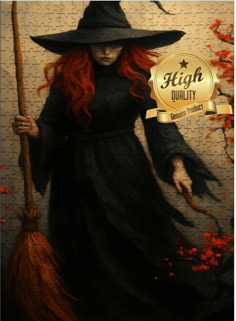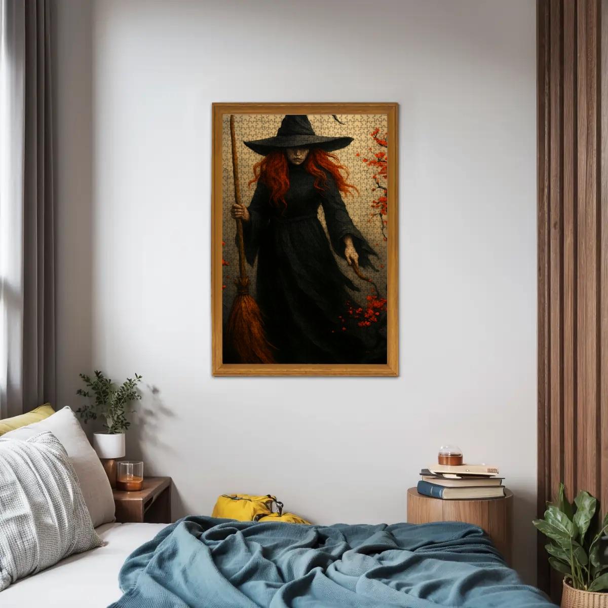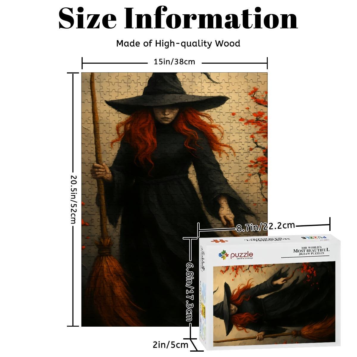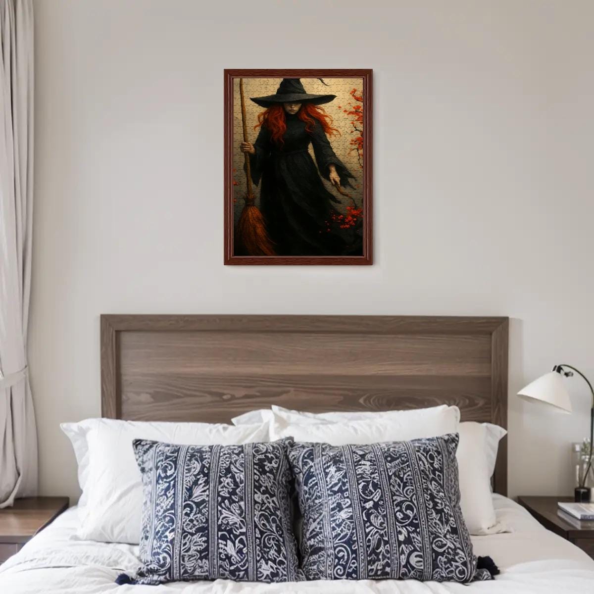This dramatic witch artwork puzzle makes a stunning and challenging activity for adults who love dark fantasy, autumn vibes, and cozy cottagecore decor. Made from durable oak wood and printed with rich UV color for long-lasting vibrancy, the finished puzzle can be framed and displayed as unique wall art.