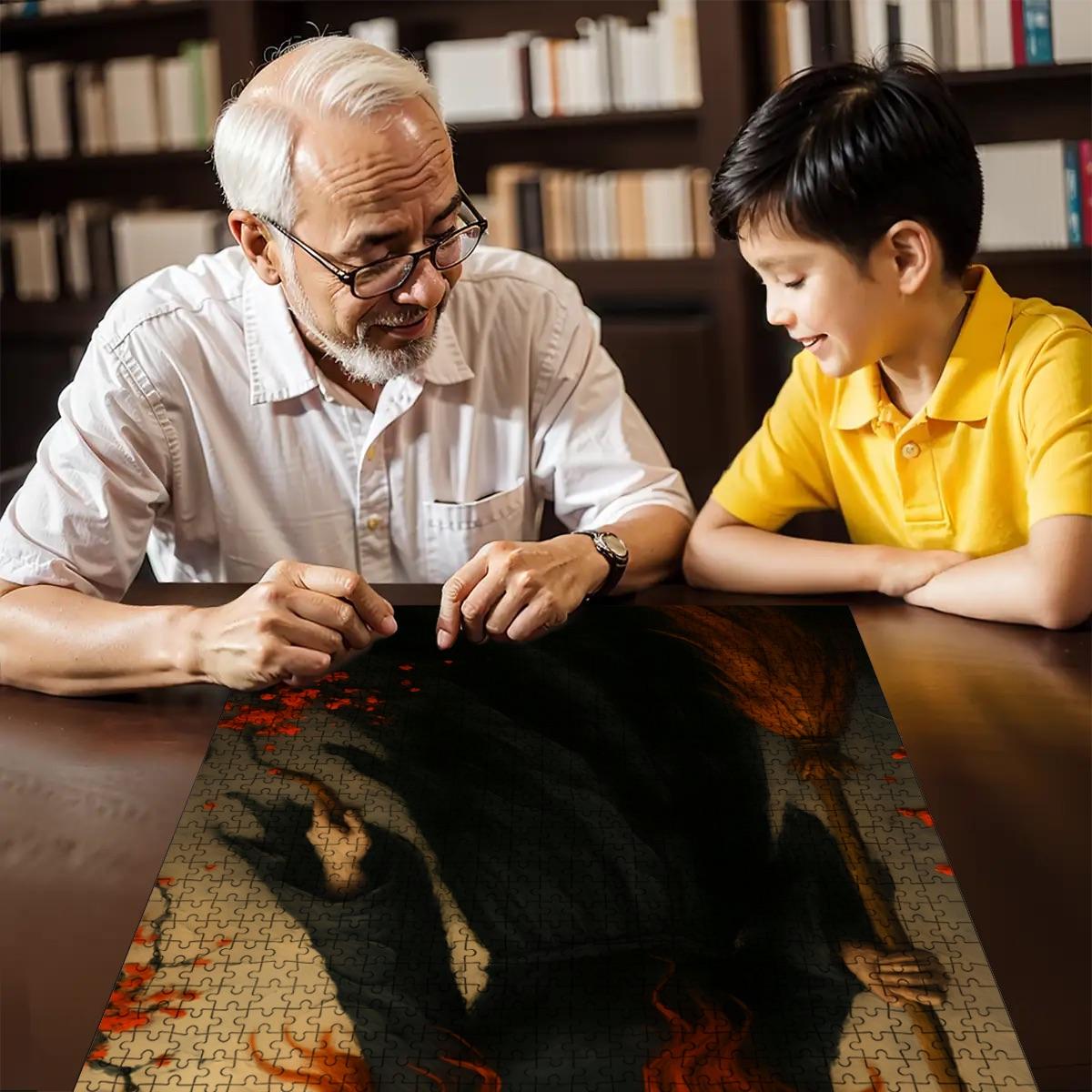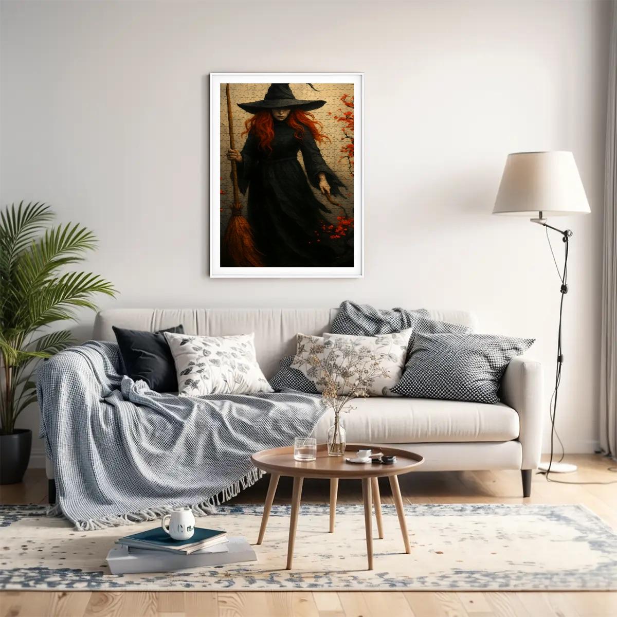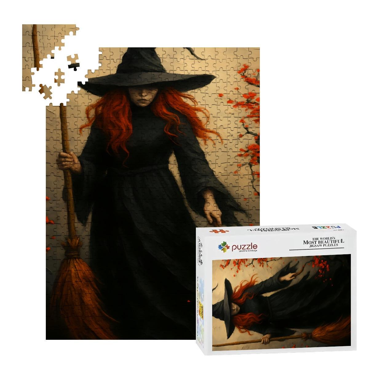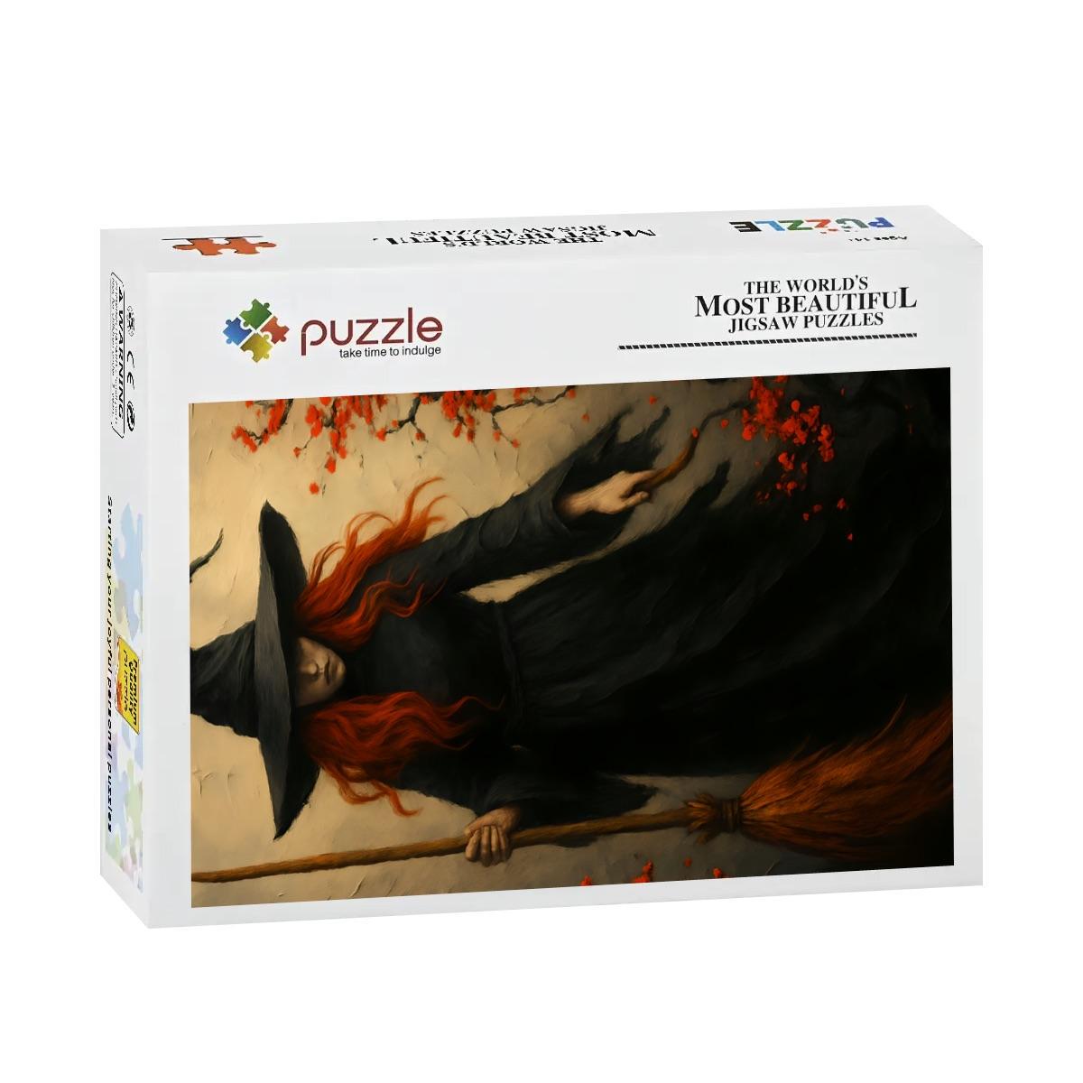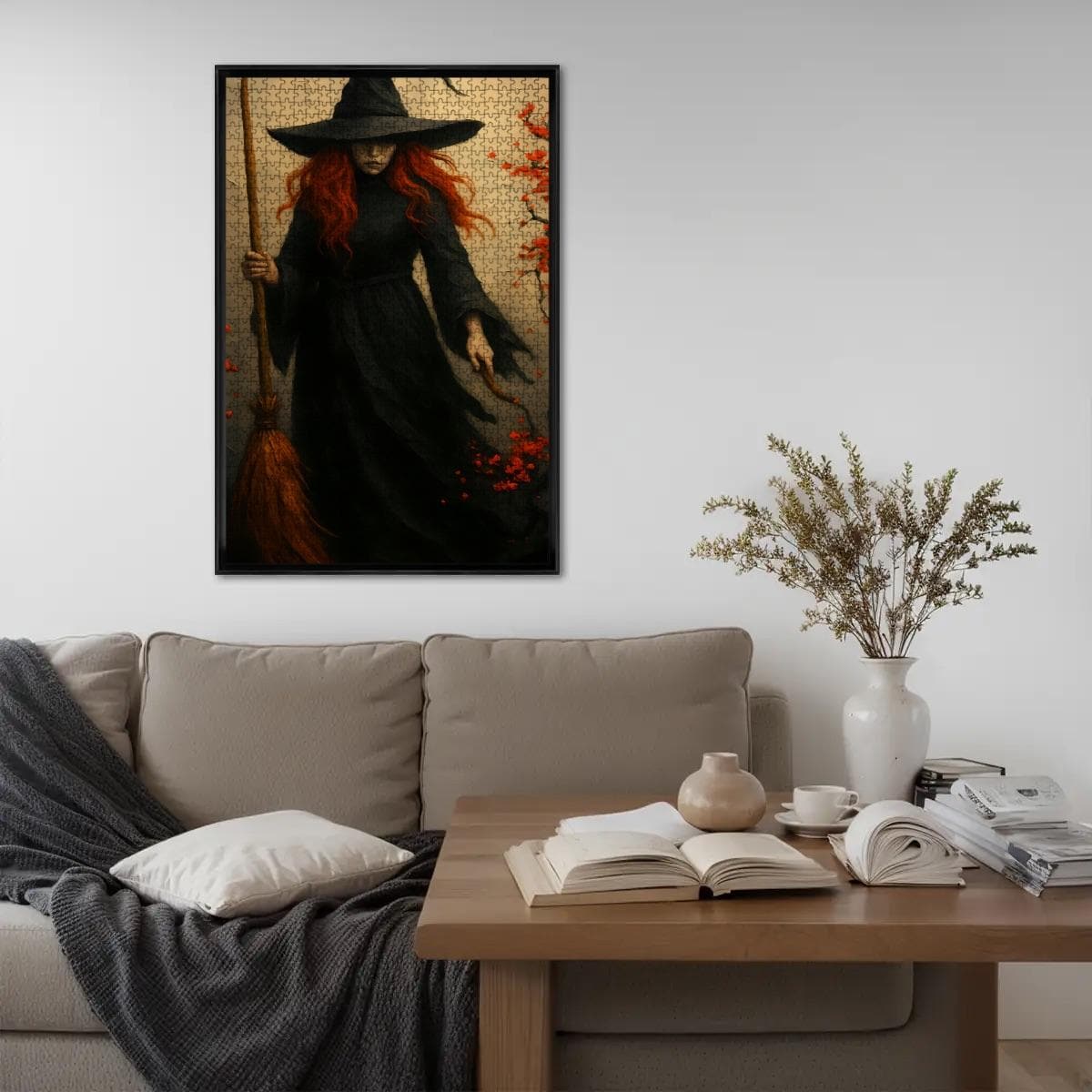 This dramatic witch artwork puzzle makes a stunning and challenging activity for adults who love dark fantasy, autumn vibes, and cozy cottagecore decor. Made from durable oak wood and printed with rich UV color for long-lasting vibrancy, the finished puzzle can be framed and displayed as unique wall art.