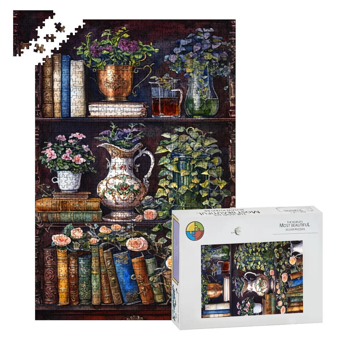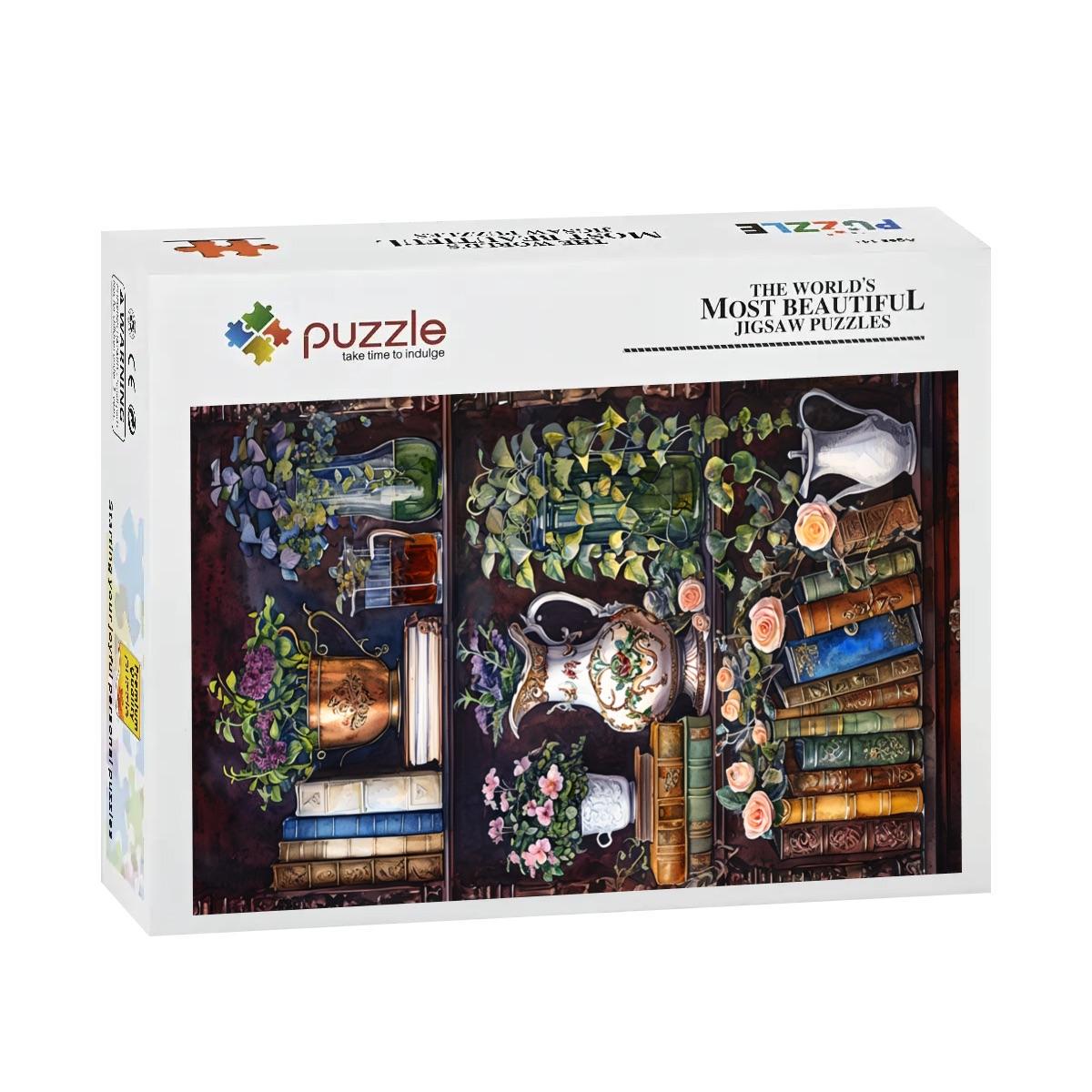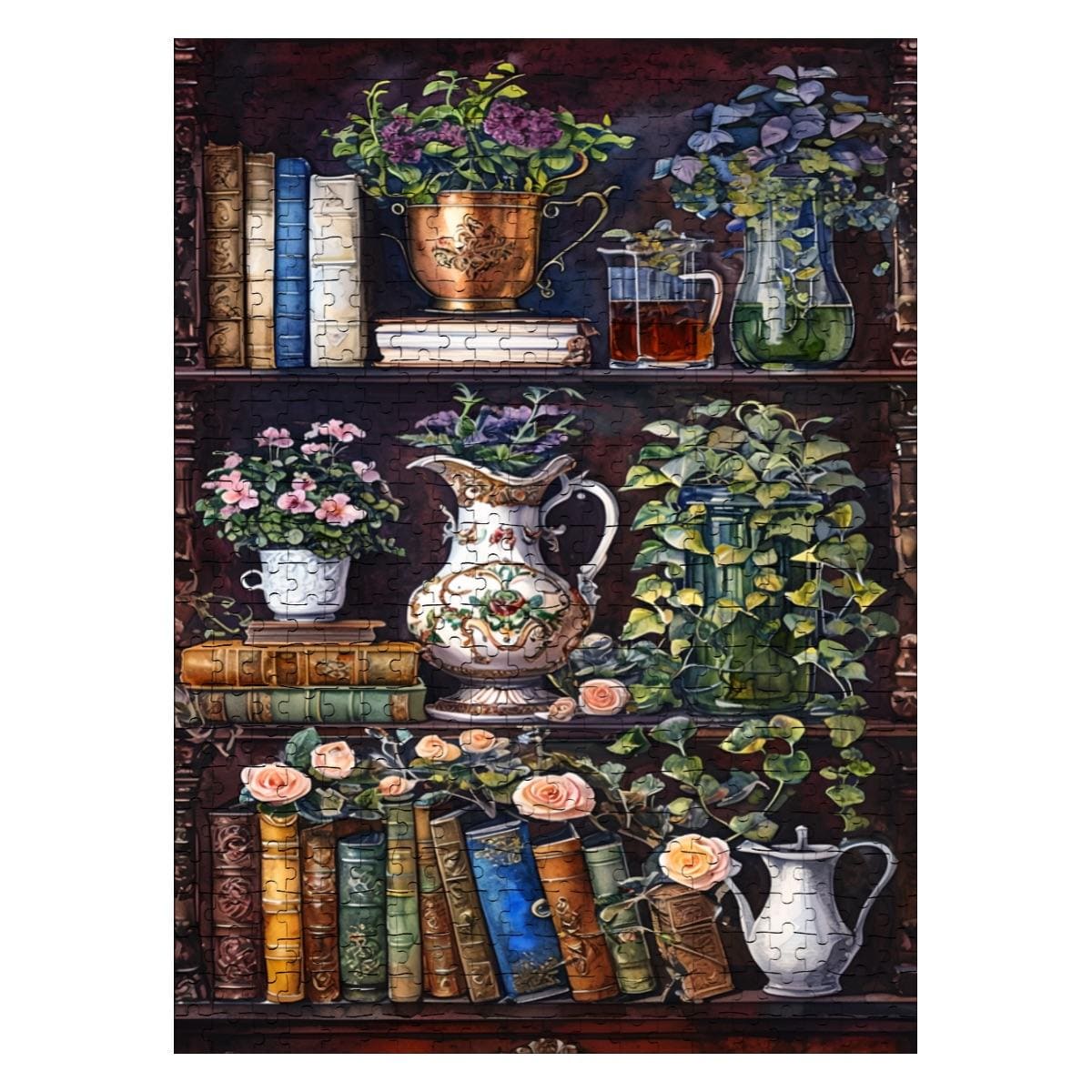 π Cozy Bookshelf & Tea Set β Wooden Art Jigsaw Puzzle (500 or 1000 Pieces)
