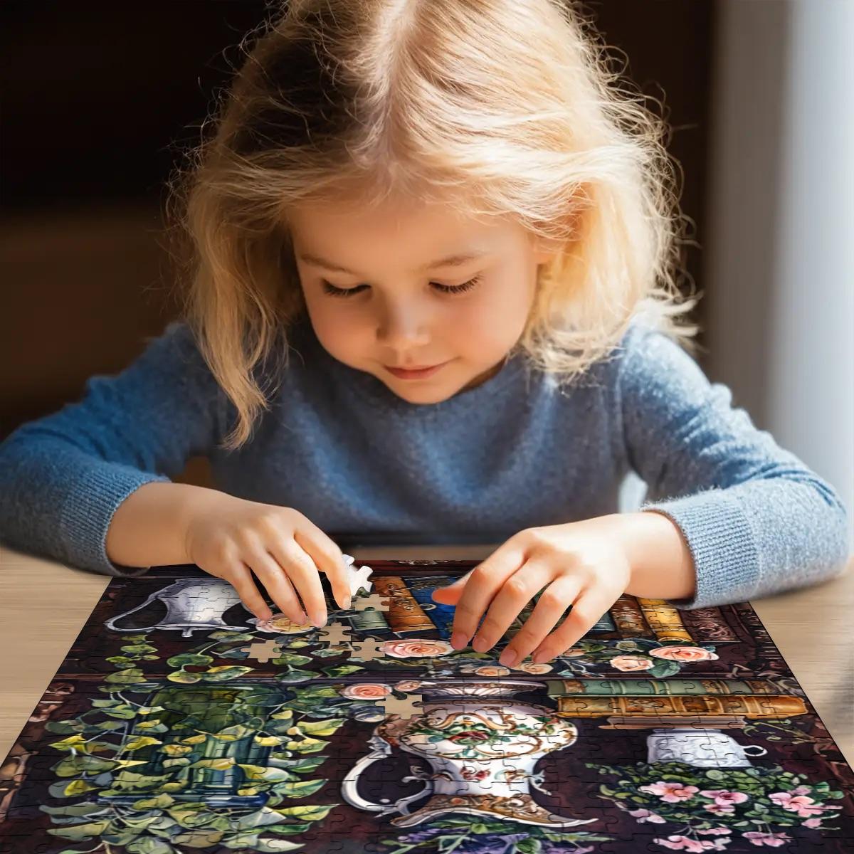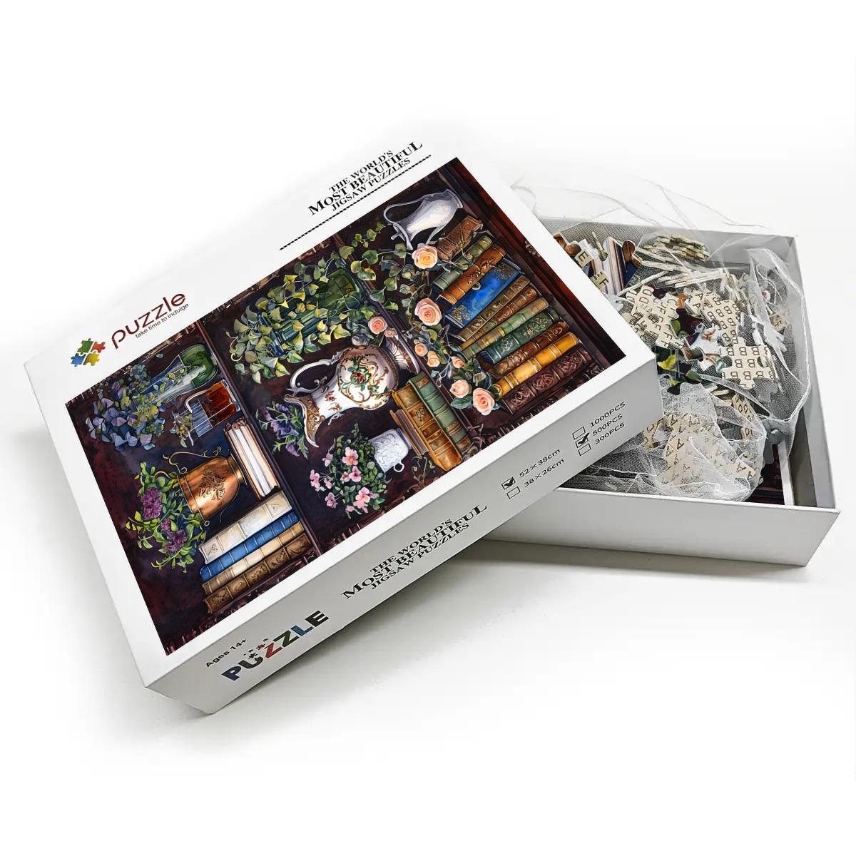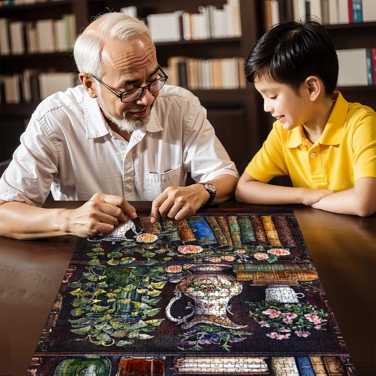 π Cozy Bookshelf & Tea Set β Wooden Art Jigsaw Puzzle (500 or 1000 Pieces)