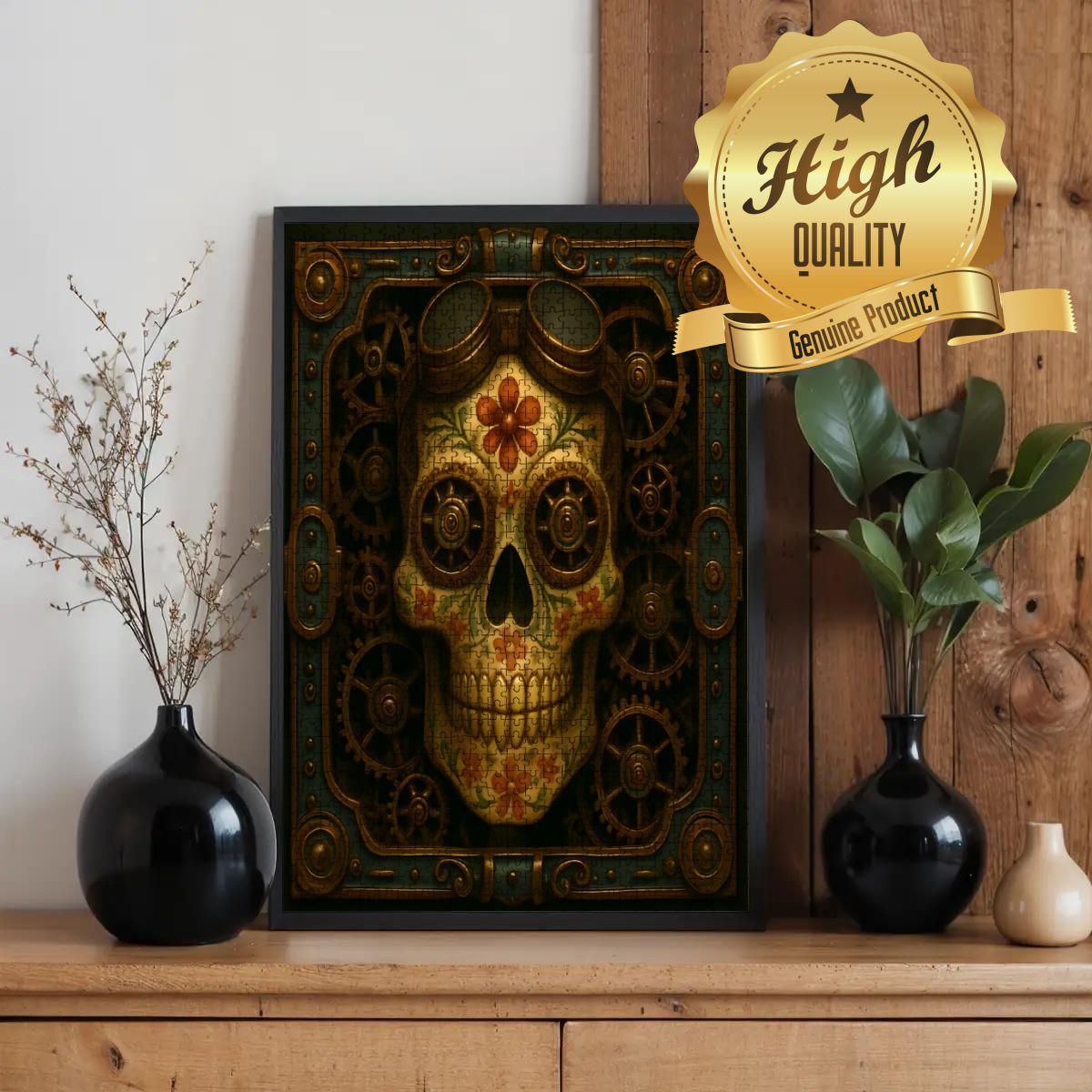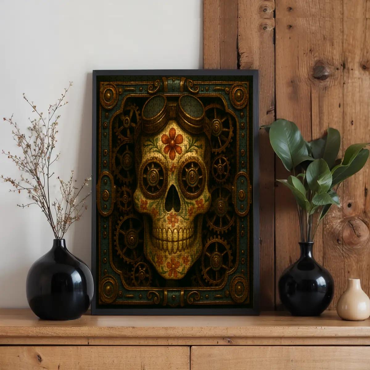 ⚙️ Steampunk Sugar Skull Wooden Jigsaw Puzzle – 500 or 1000 Pieces