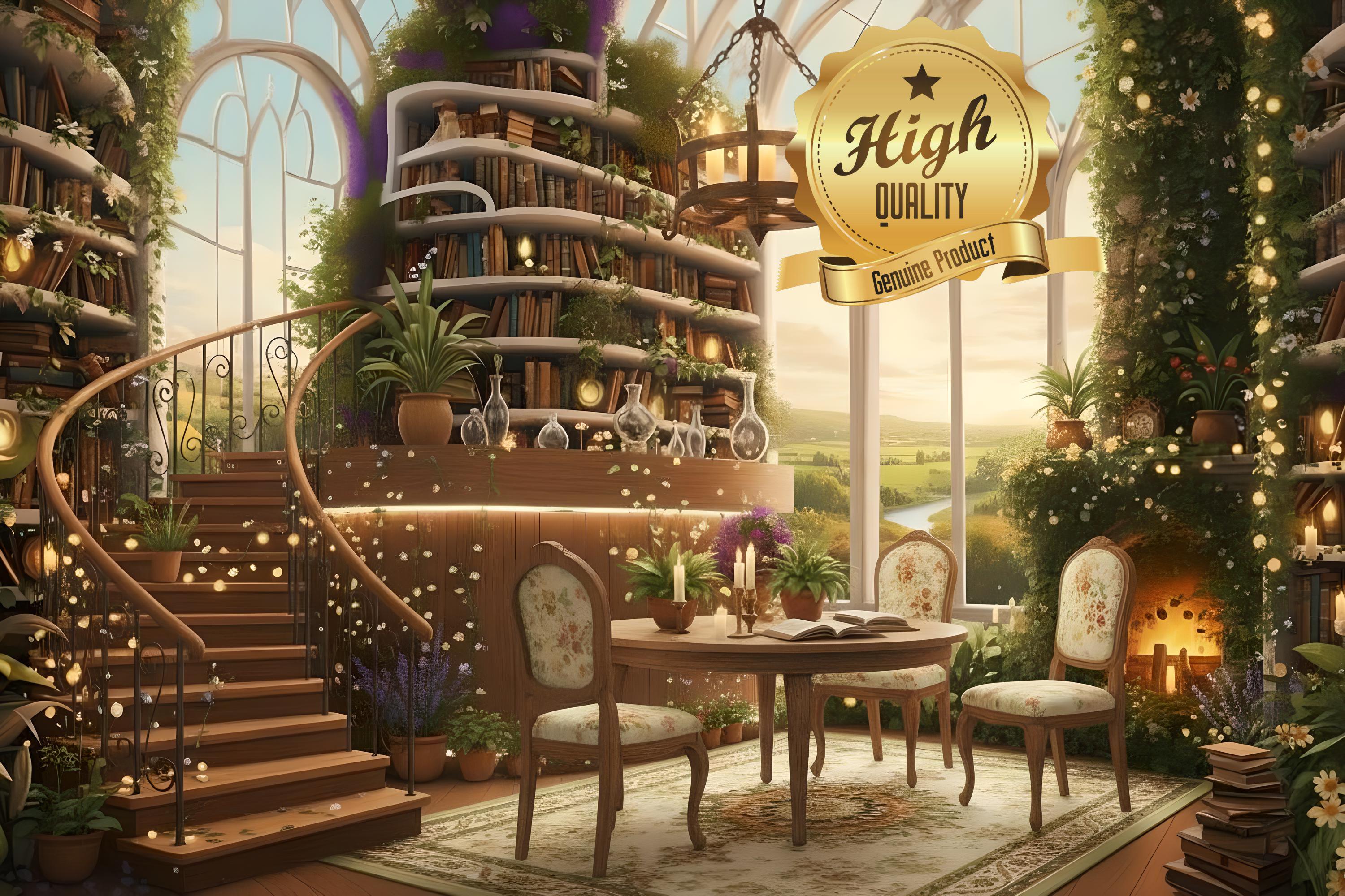 Escape into a world of quiet wonder with this Magical Library 500 or 1000-Piece Wooden Jigsaw Puzzle. Featuring a warm, golden reading room filled with glowing string lights, spiral stairs, and lush greenery — this puzzle brings a peaceful, storybook atmosphere into your home.