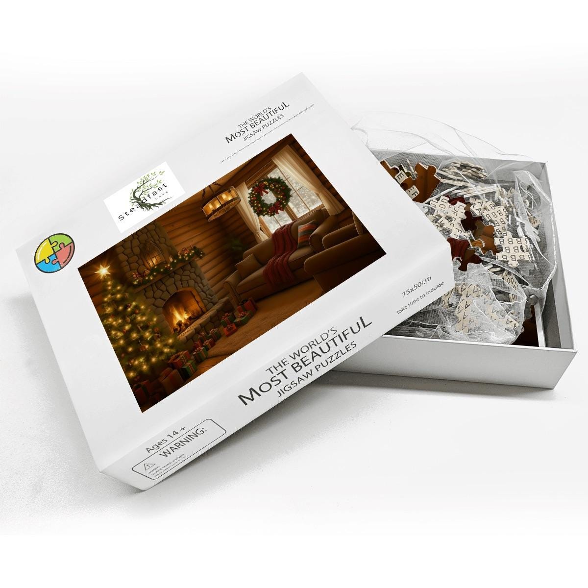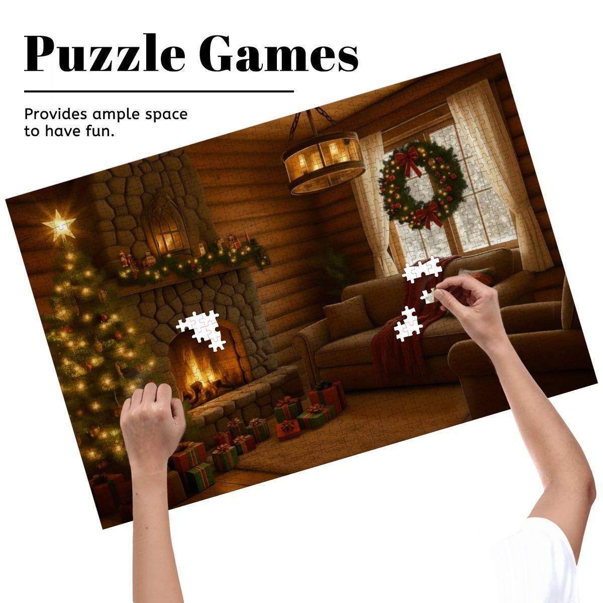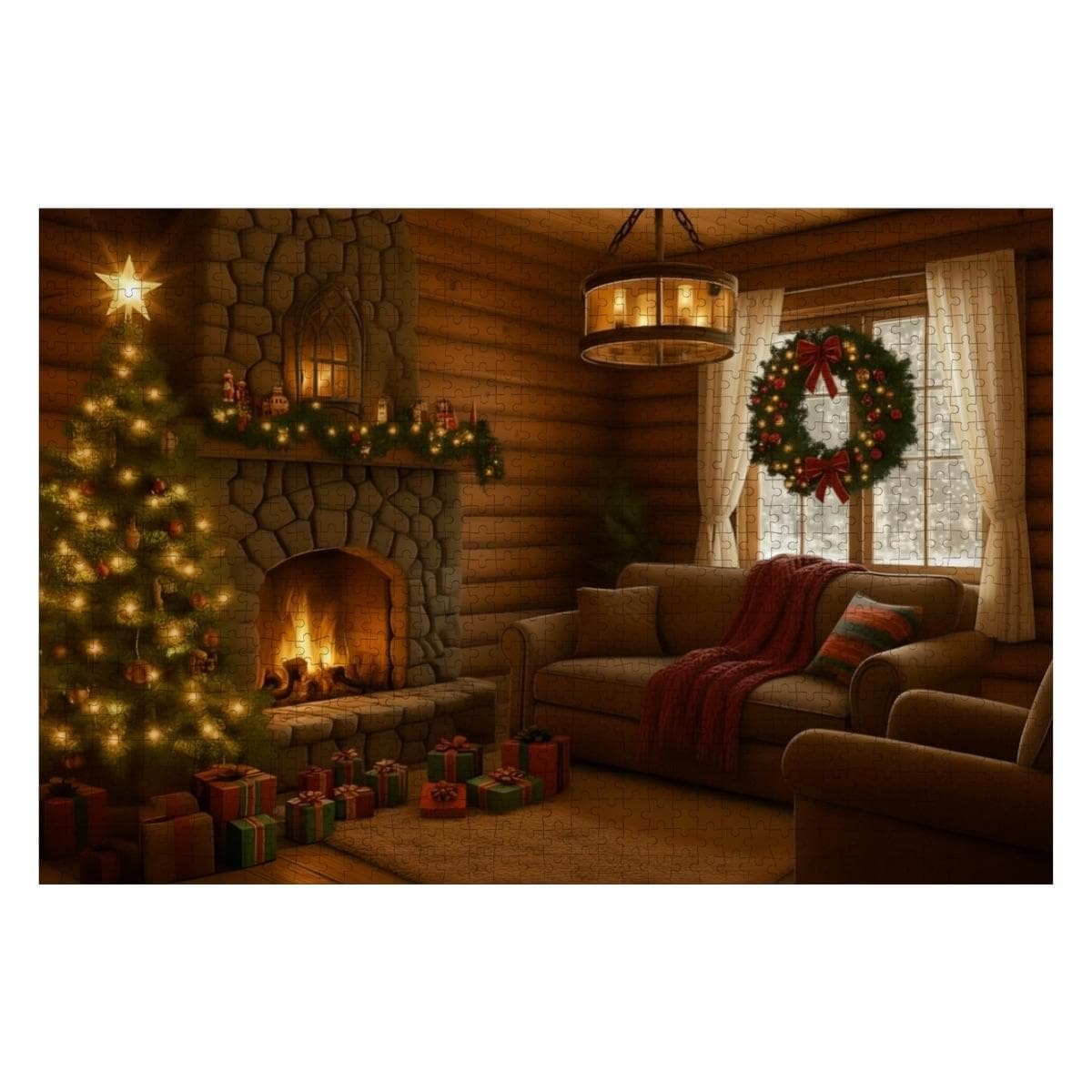 Christmas Cabin, Wooden Jigsaw Puzzle 500 pieces, 1000 pcs Horizontal, LibraryPuzzle, 1000 piece puzzle, Originally Made, Precision Cut Wood