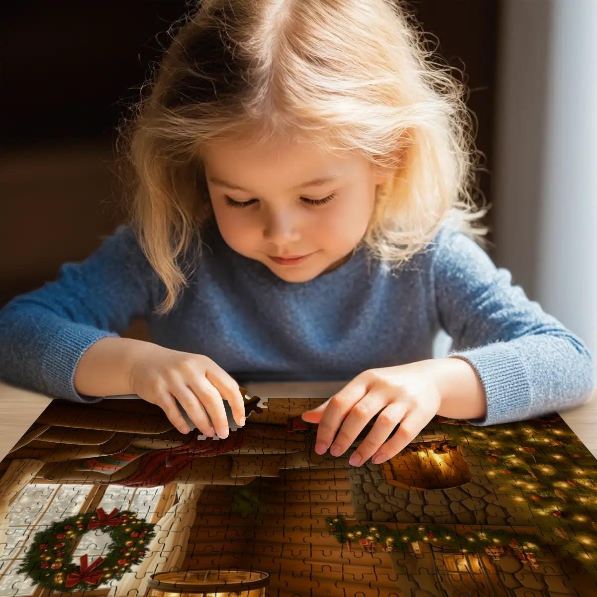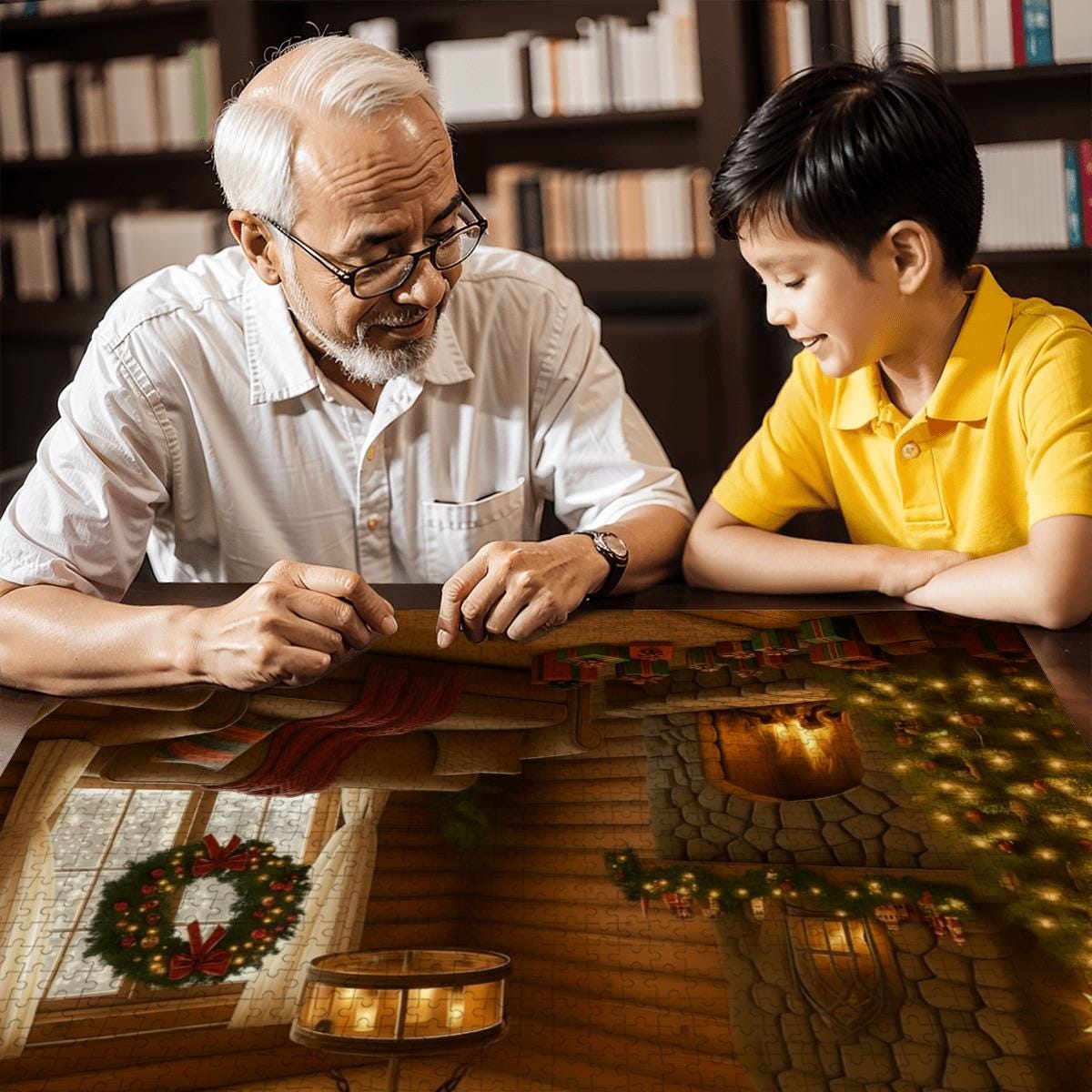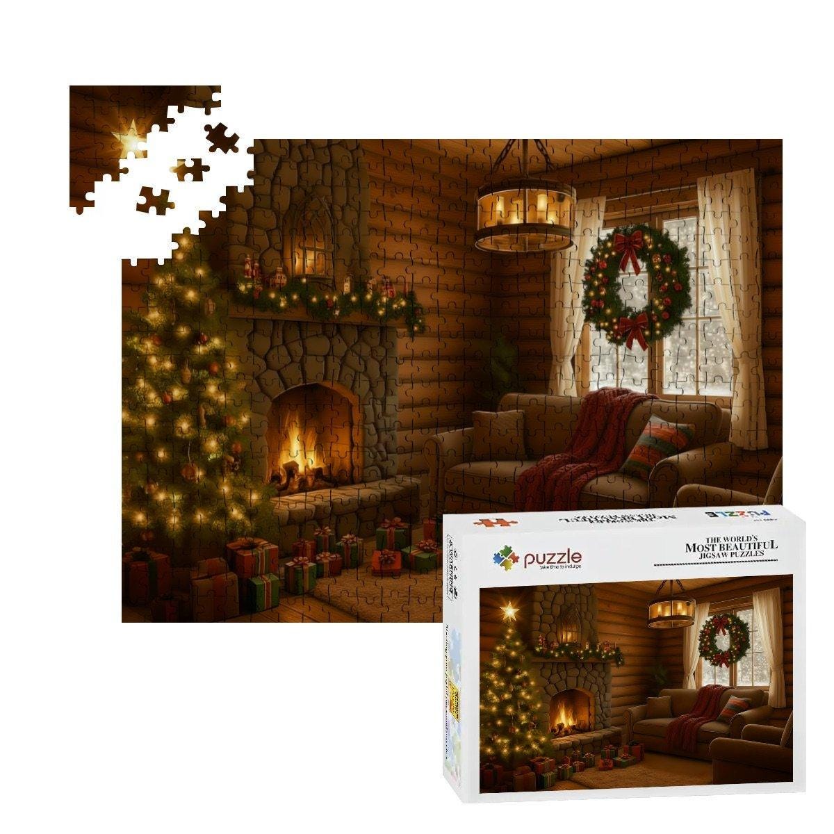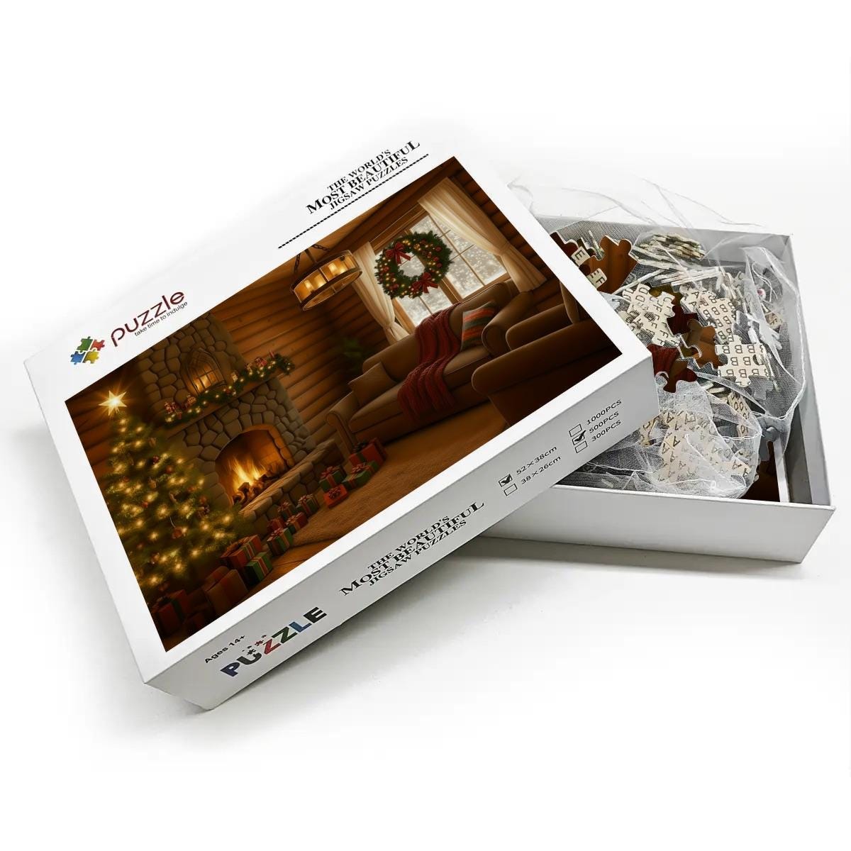 Christmas Cabin, Wooden Jigsaw Puzzle 500 pieces, 1000 pcs Horizontal, LibraryPuzzle, 1000 piece puzzle, Originally Made, Precision Cut Wood
