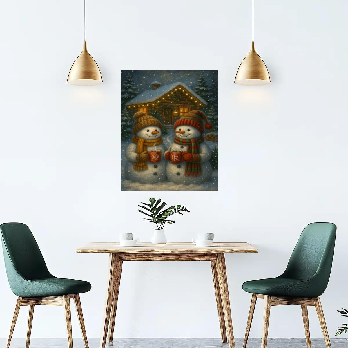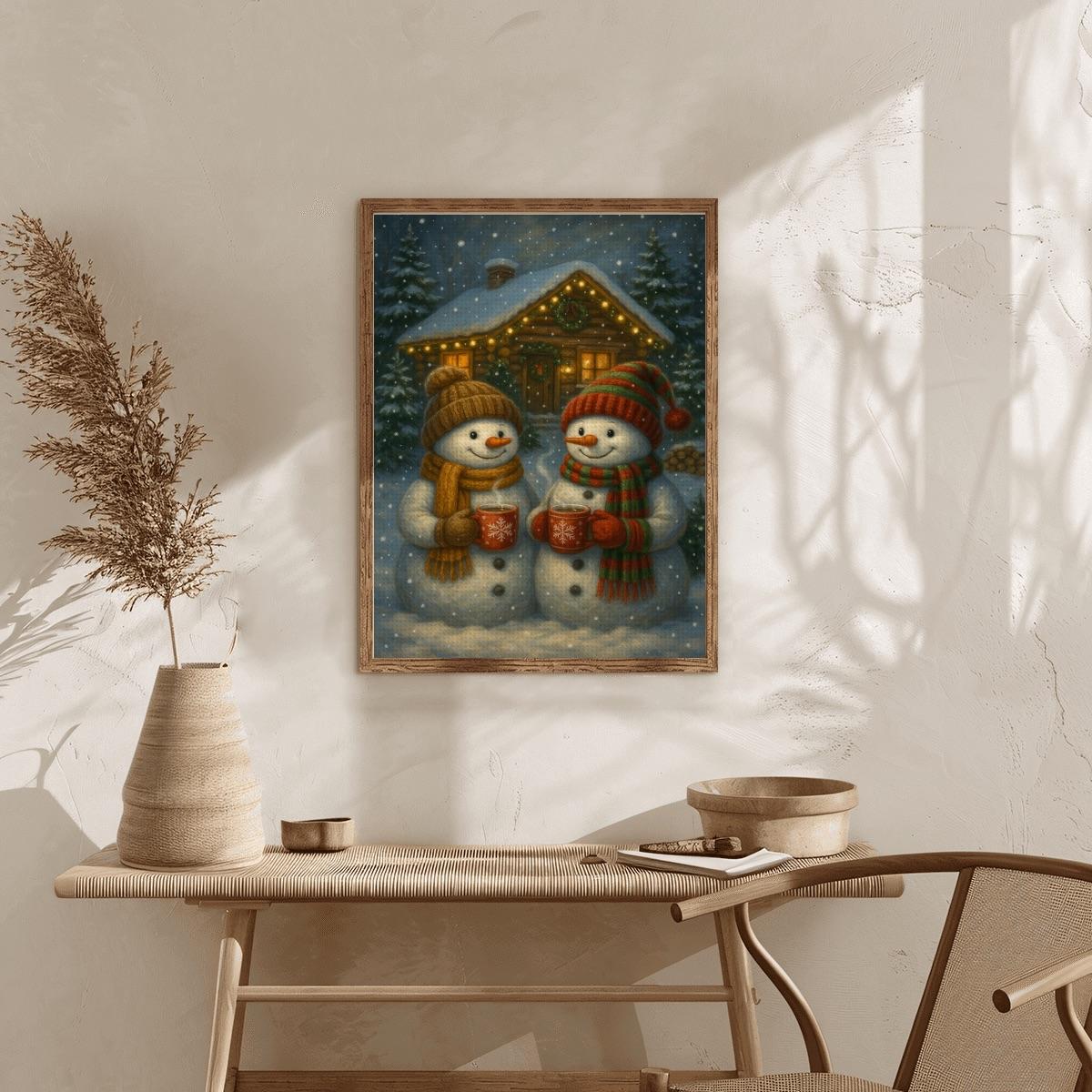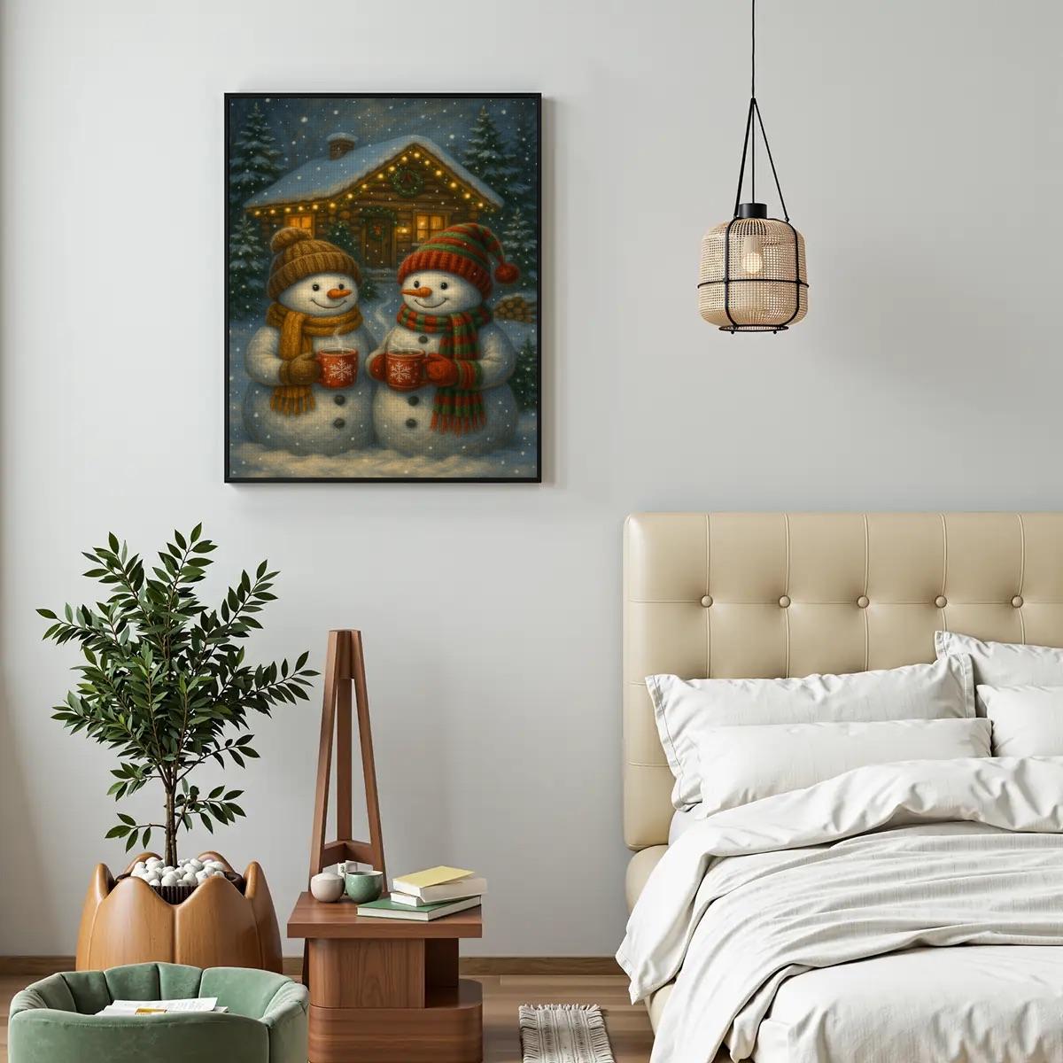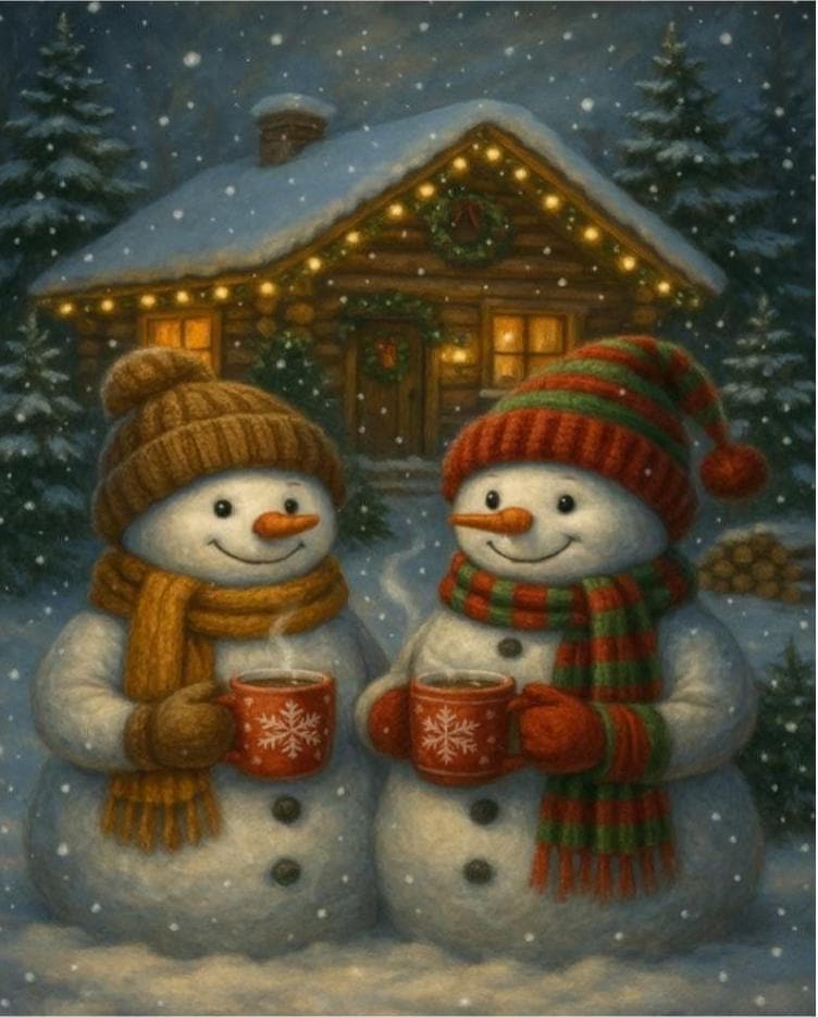 Bring warm winter charm into your home with this Cozy Snowman Diamond Painting Kit! Featuring two smiling snowmen sharing hot cocoa in front of a glowing log cabin, this design is perfect for holiday crafting, winter décor, and thoughtful handmade gifts. Relax, unwind, and enjoy a stress-relieving creative project you’ll be proud to display or gift.