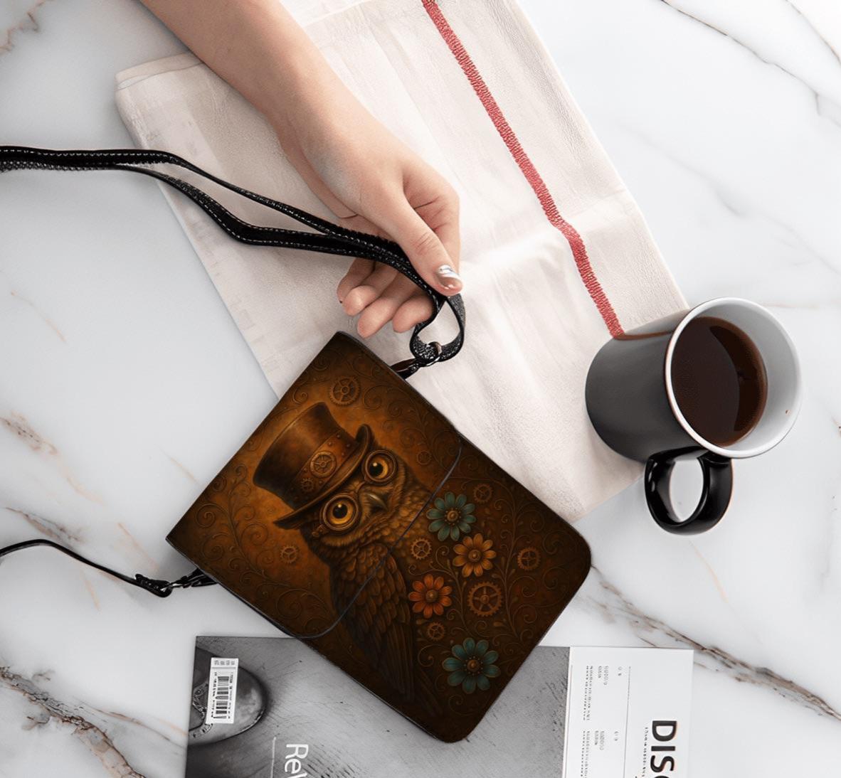 🦉✨ Steampunk Owl Cell Phone Crossbody Bag