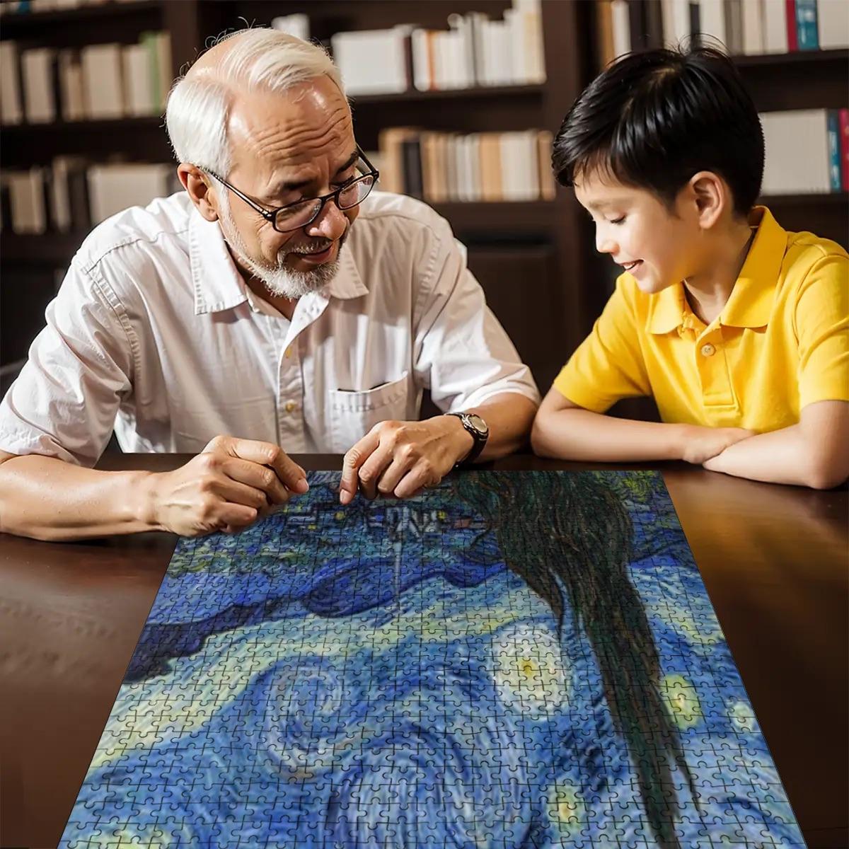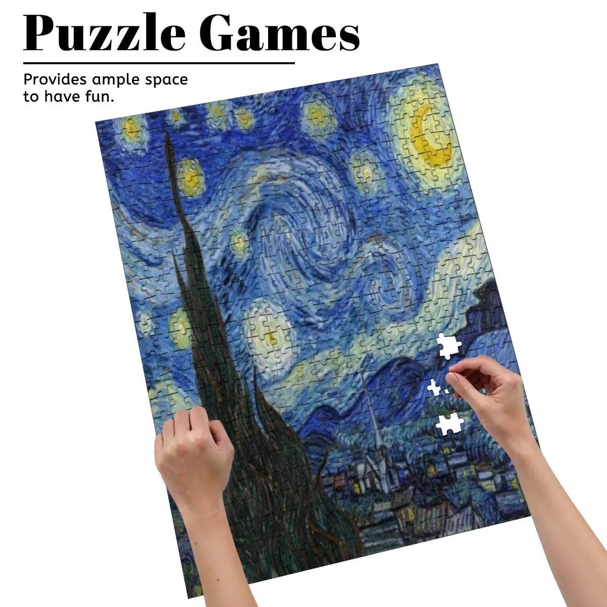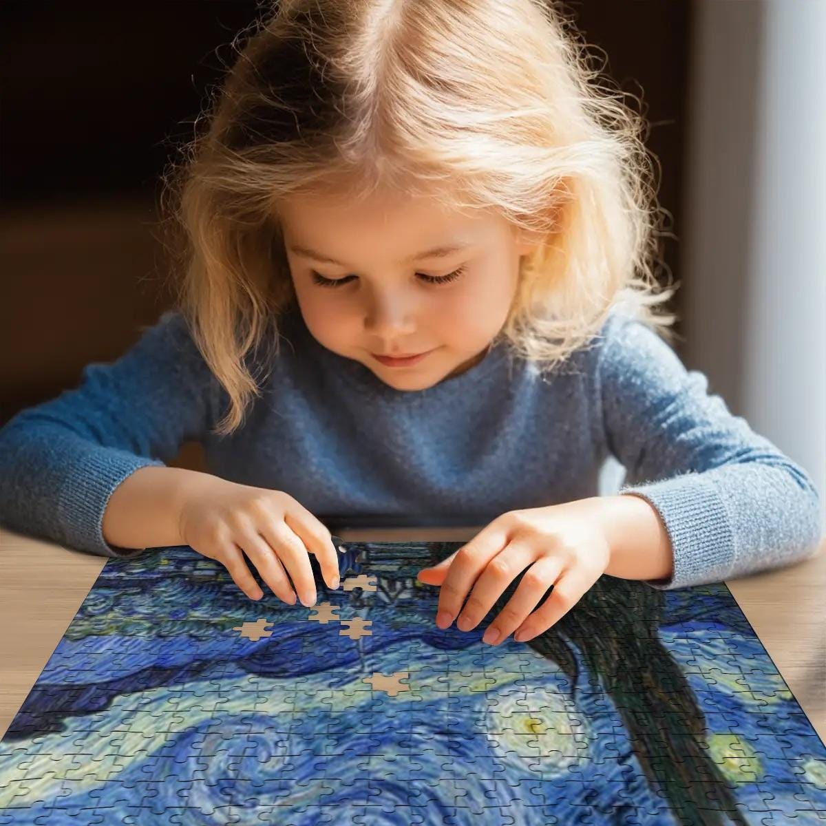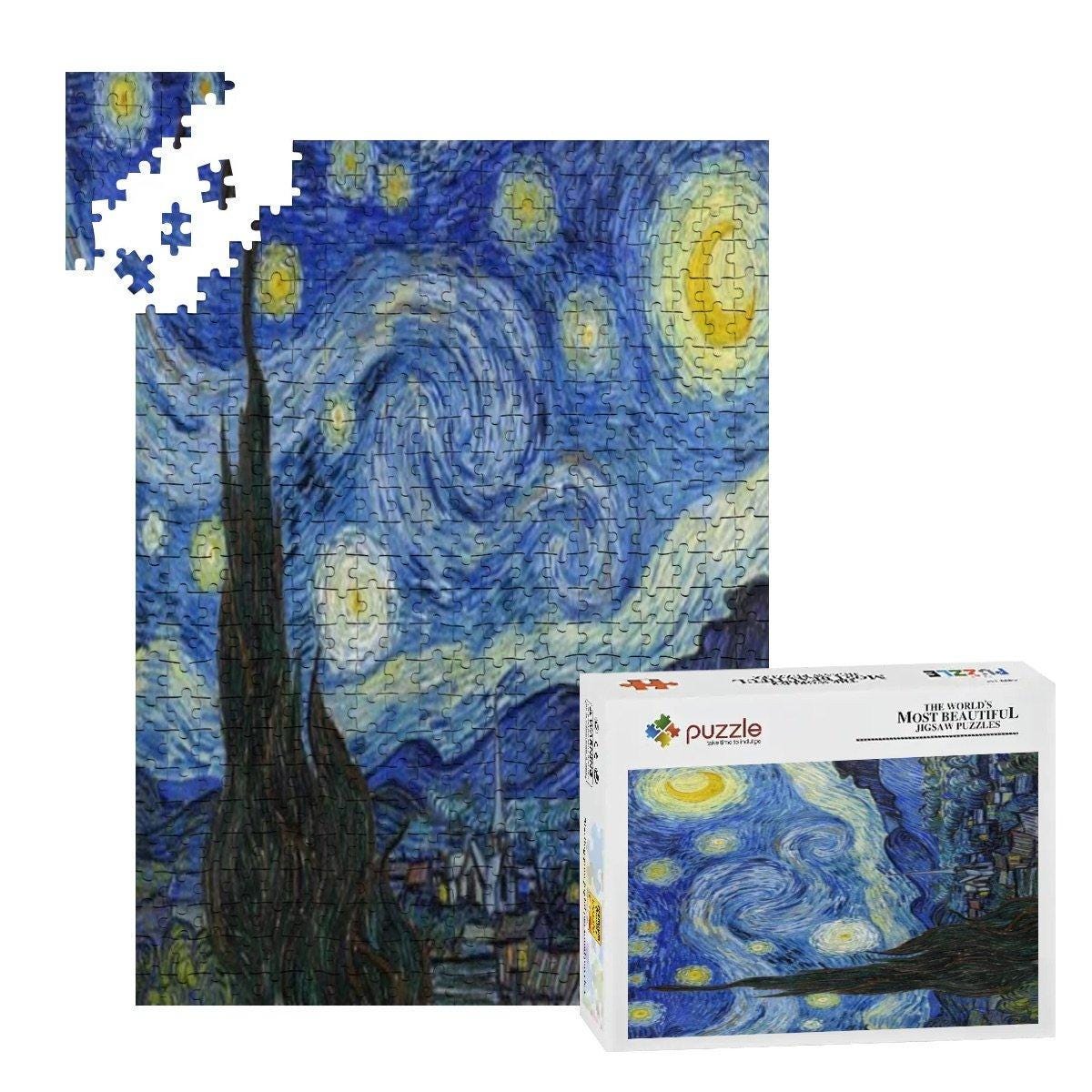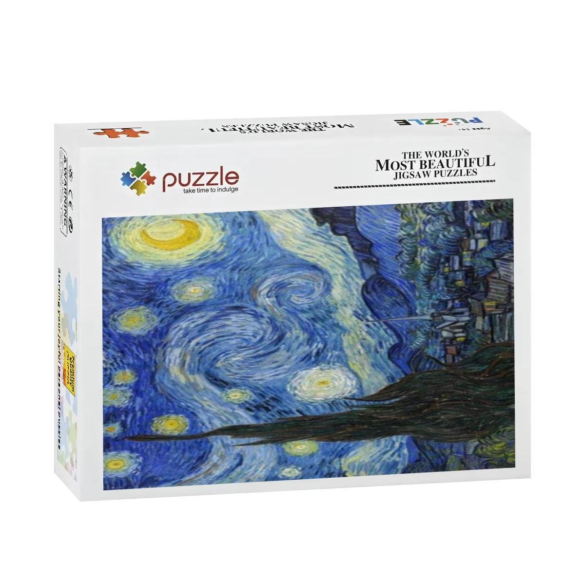 Experience the magic of Van Gogh’s Starry Night with this beautifully crafted oak-wood jigsaw puzzle, available in 500 pieces or 1000 pieces. Designed for puzzle lovers, art fans, and anyone who appreciates high-quality craftsmanship, this piece is both a relaxing activity and a stunning work of art when finished.
