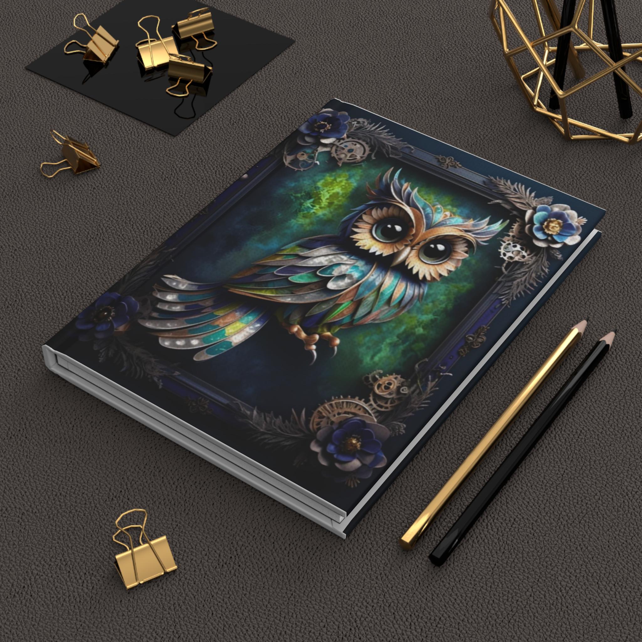 Steampunk Owl Journal, Hardcover Notebook for Writing, Matte Diary, Gift for Writers, Owl Lover, Vintage Style, Bullet Journal, Personalized
